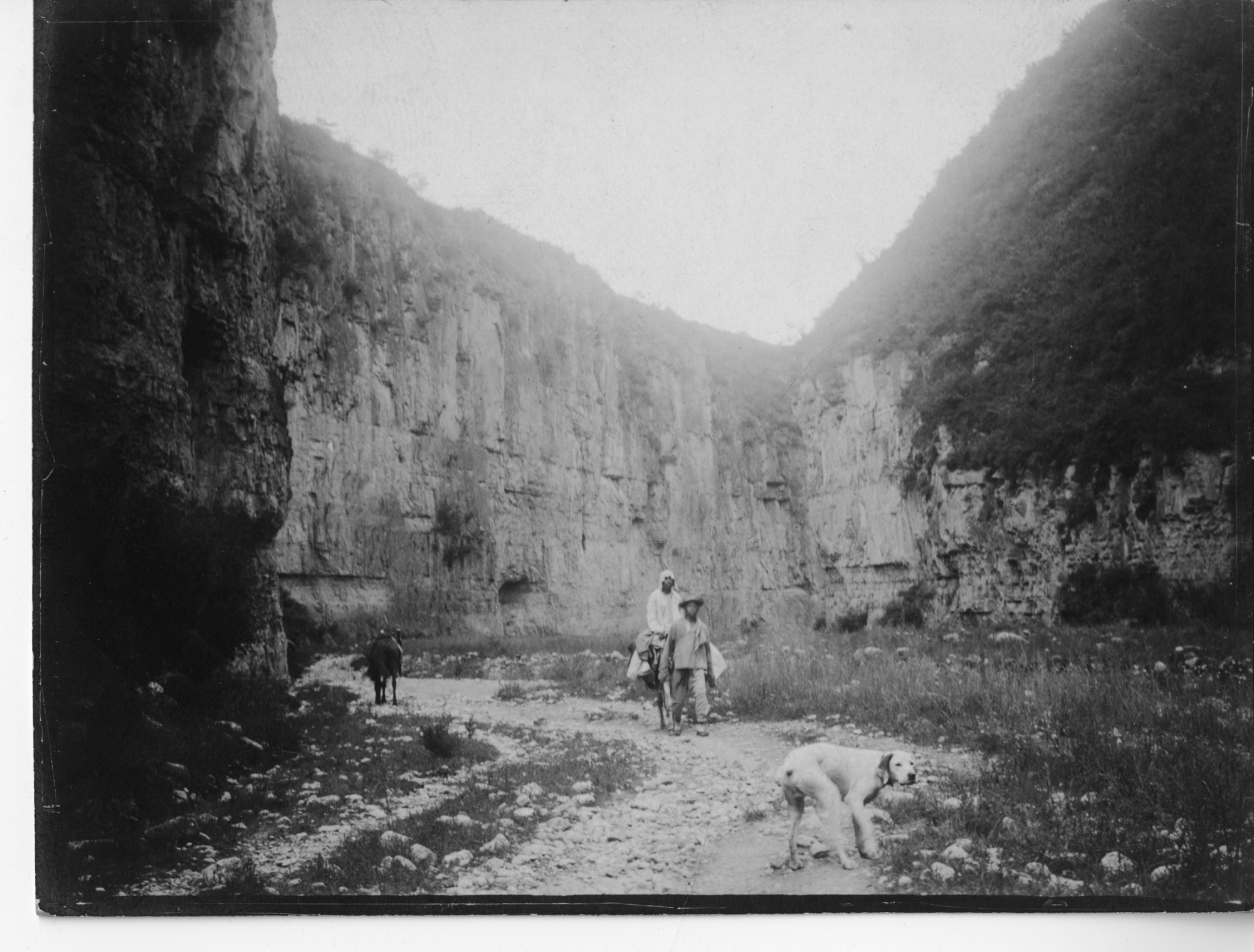 China, Miscellaneous Scenes - Men, horses, and dog on trail