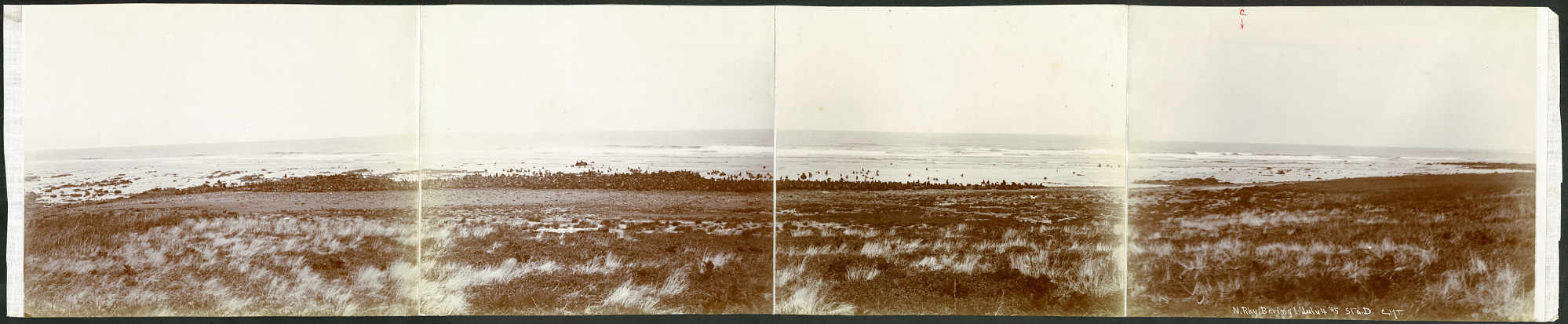 Four-photograph panorama of seal rookery on Bering Island [Ostrov Beringa], Russia. Photograph was taken during Stejneger's field work for U.S. Bureau of Fisheries.