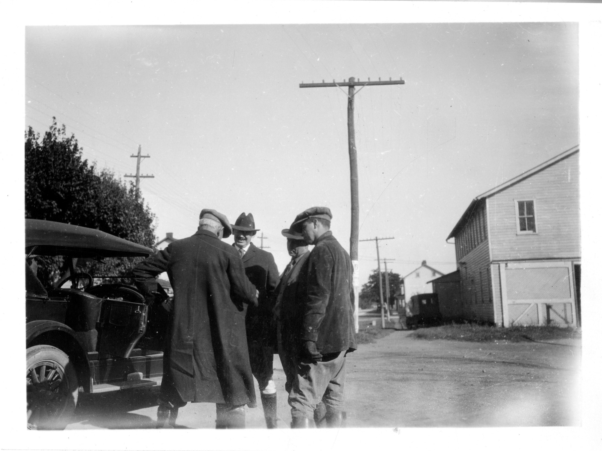 Men Standing Near Car and Barn