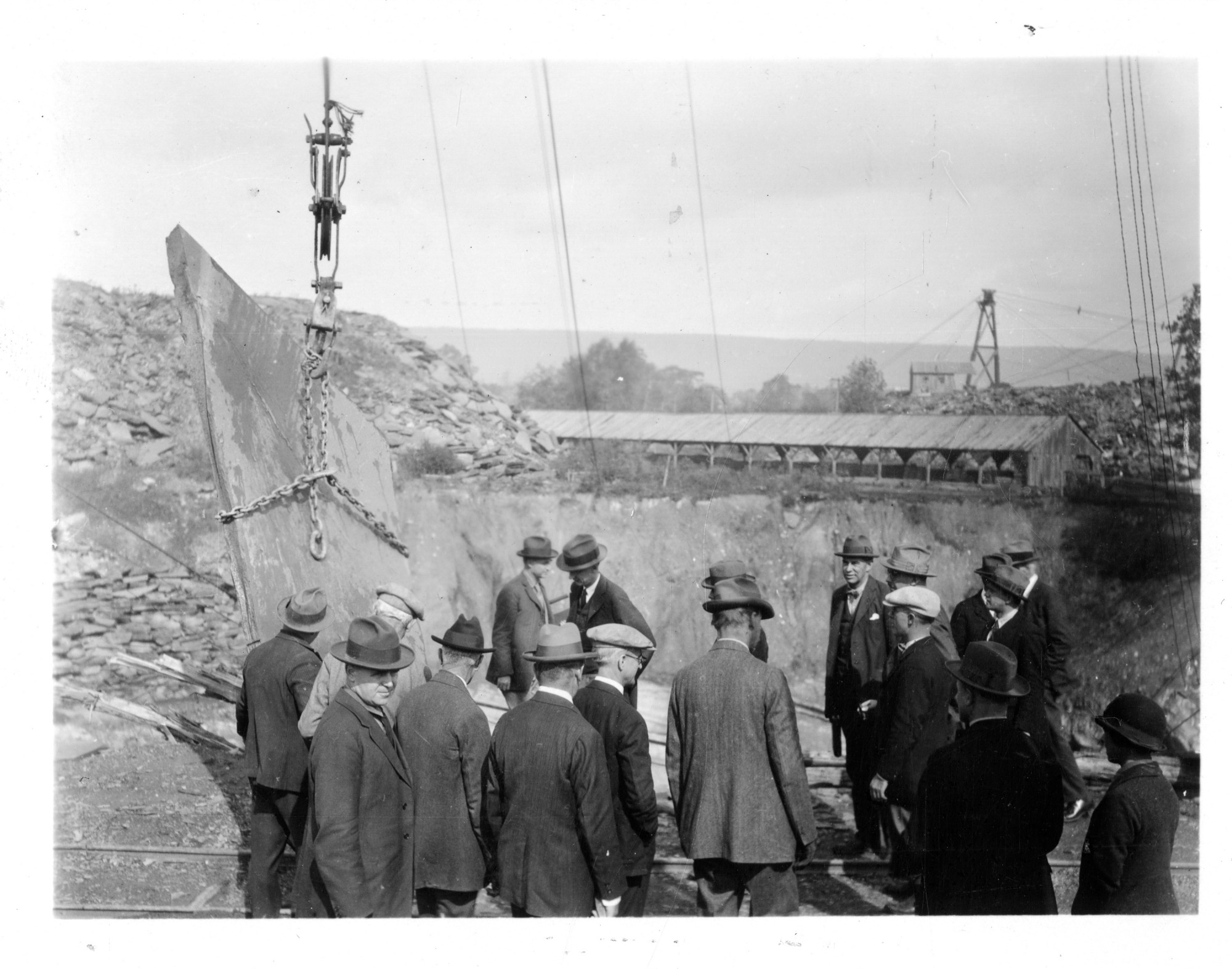 Men Standing Around Rock Possibly Extracted from Hillside