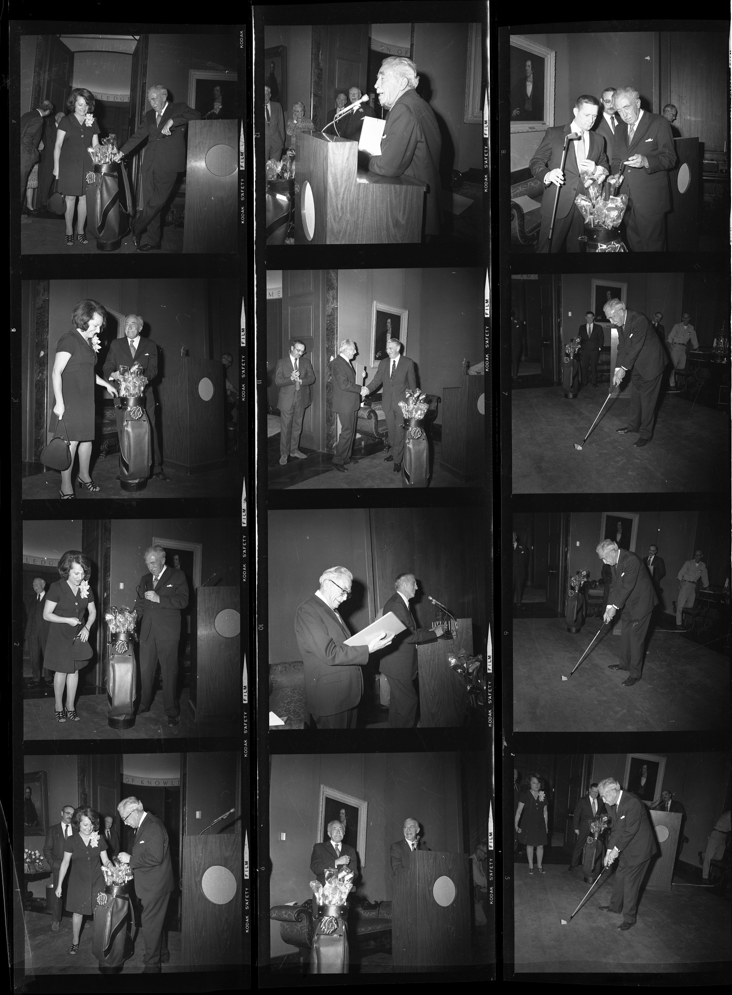 Reception for the retirement of Dr. Philip W. Bishop, curator in the Division of Manufacturing at the National Museum of History and Technology, now known as the National Museum of American History, with consultant to the Secretary Frank A. Taylor, former Director General of Museums, and John H. White, curator in the Division of Transportation in the Department of Industries.