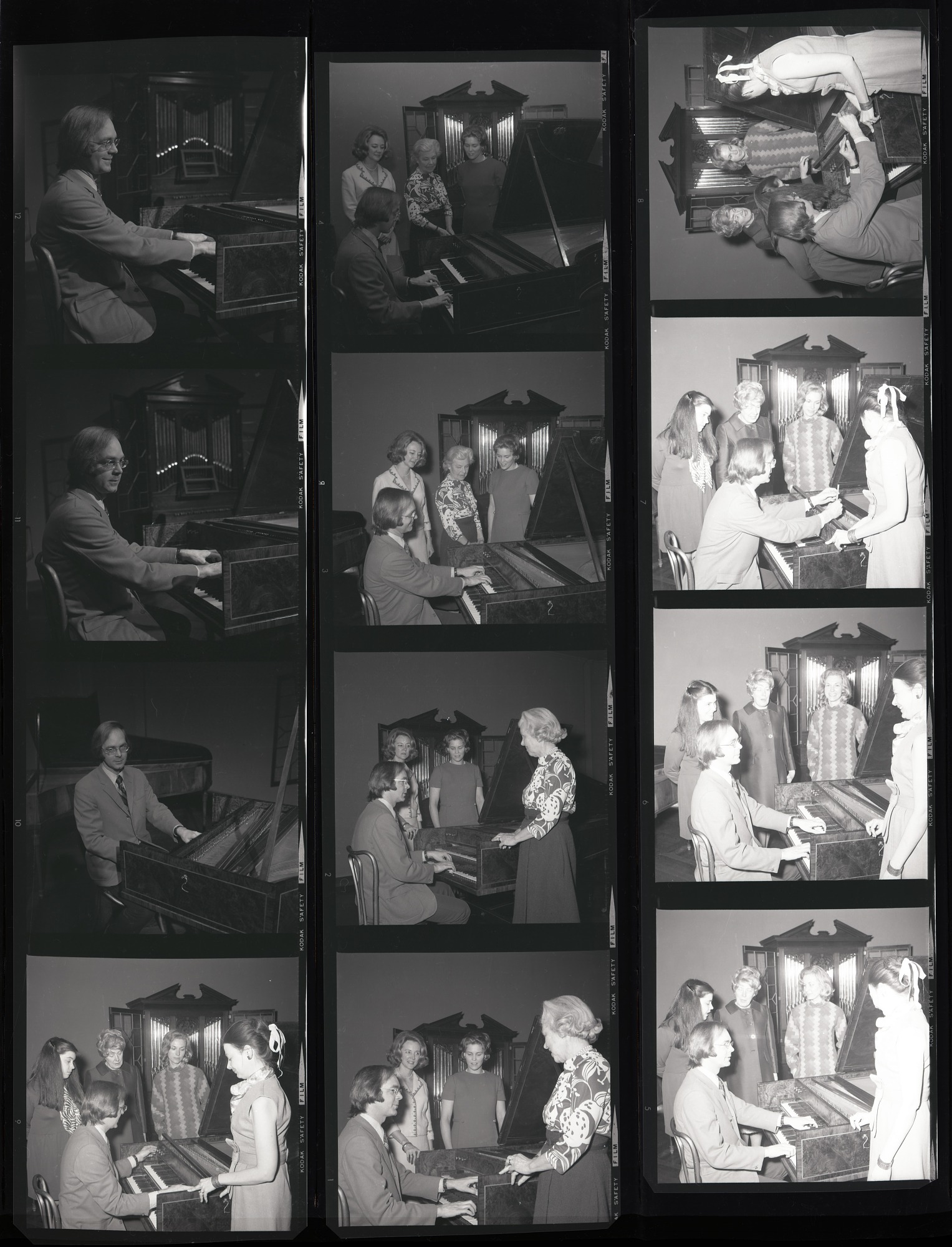 Friends of Music program in the Hall of Musical Instruments at the National Museum of History and Technology, now known as the National Museum of American History, with Concert Director James M. Weaver on the harpsichord.