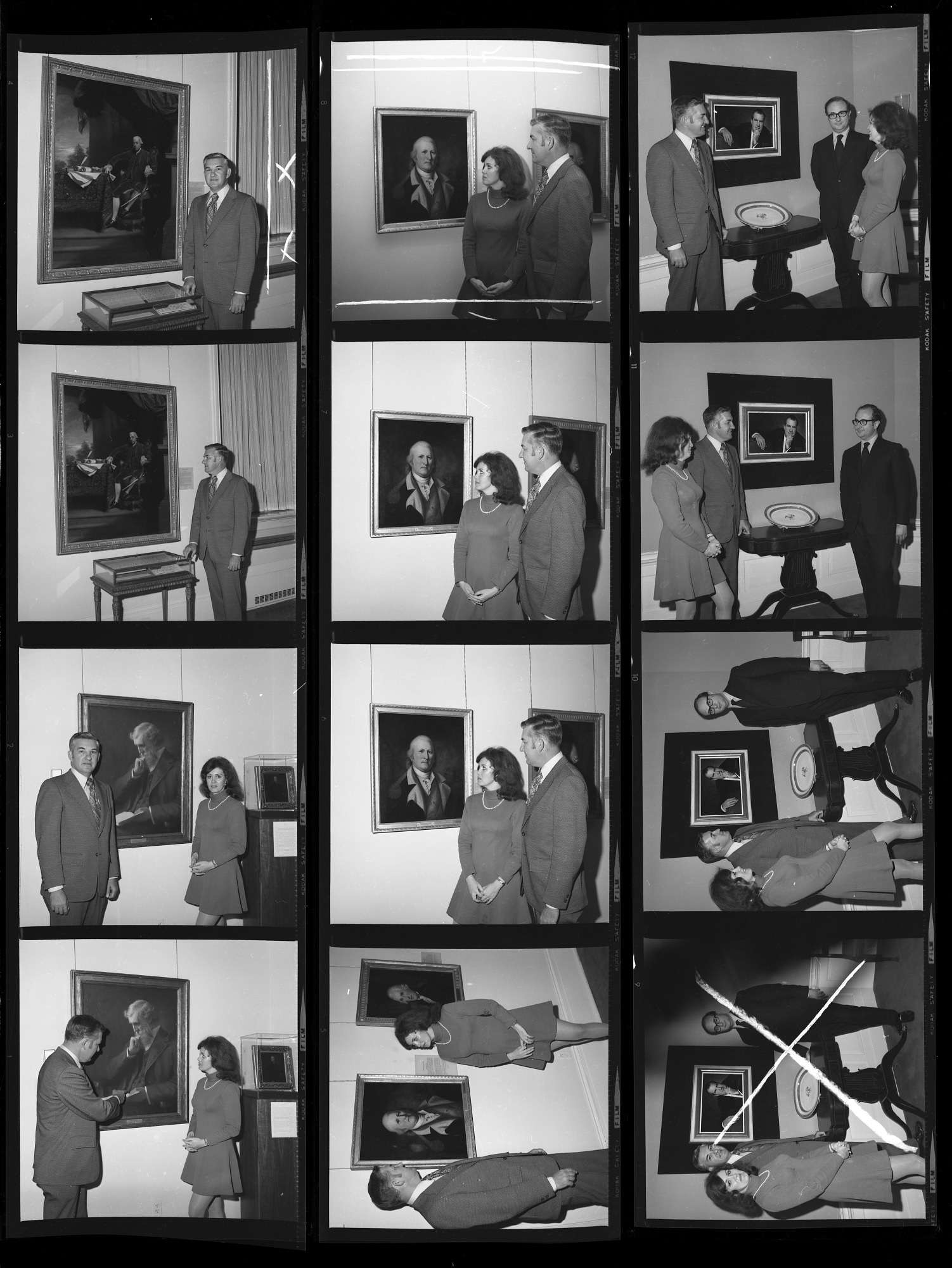 Press release shots for "Catalog of American Portraits" (CAP) at the National Portrait Gallery (NPG), with NPG Director Marvin Sadik, researcher Carol V. Bower, and CAP national survey coordinator Richard K. Doud.