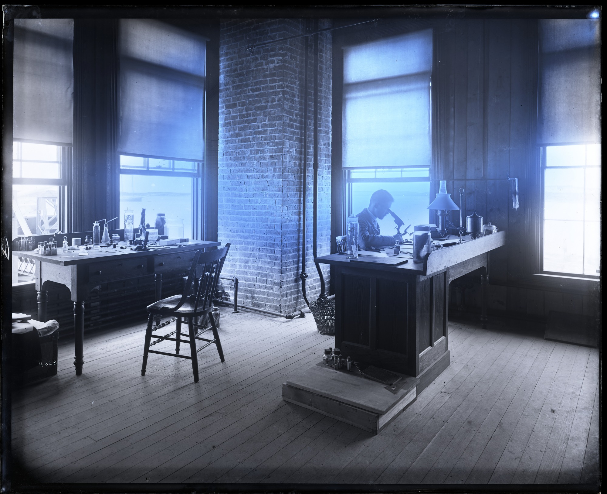 A.H. Baldwin in laboratory at United States Fish Commission Woods Hole Station, Massachusetts.
