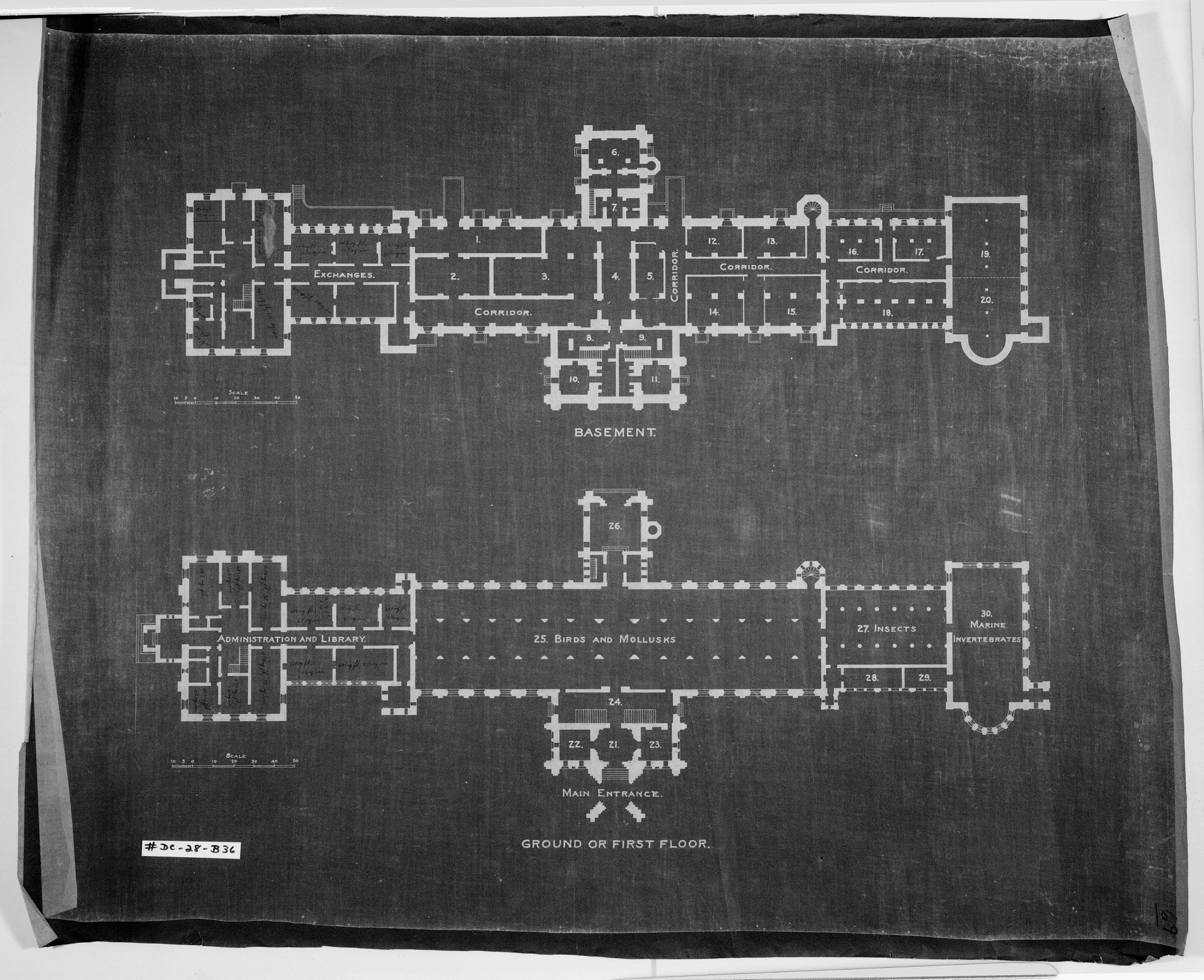Basement and First Floor Plans of Smithsonian Institution Building, or Castle, 1875