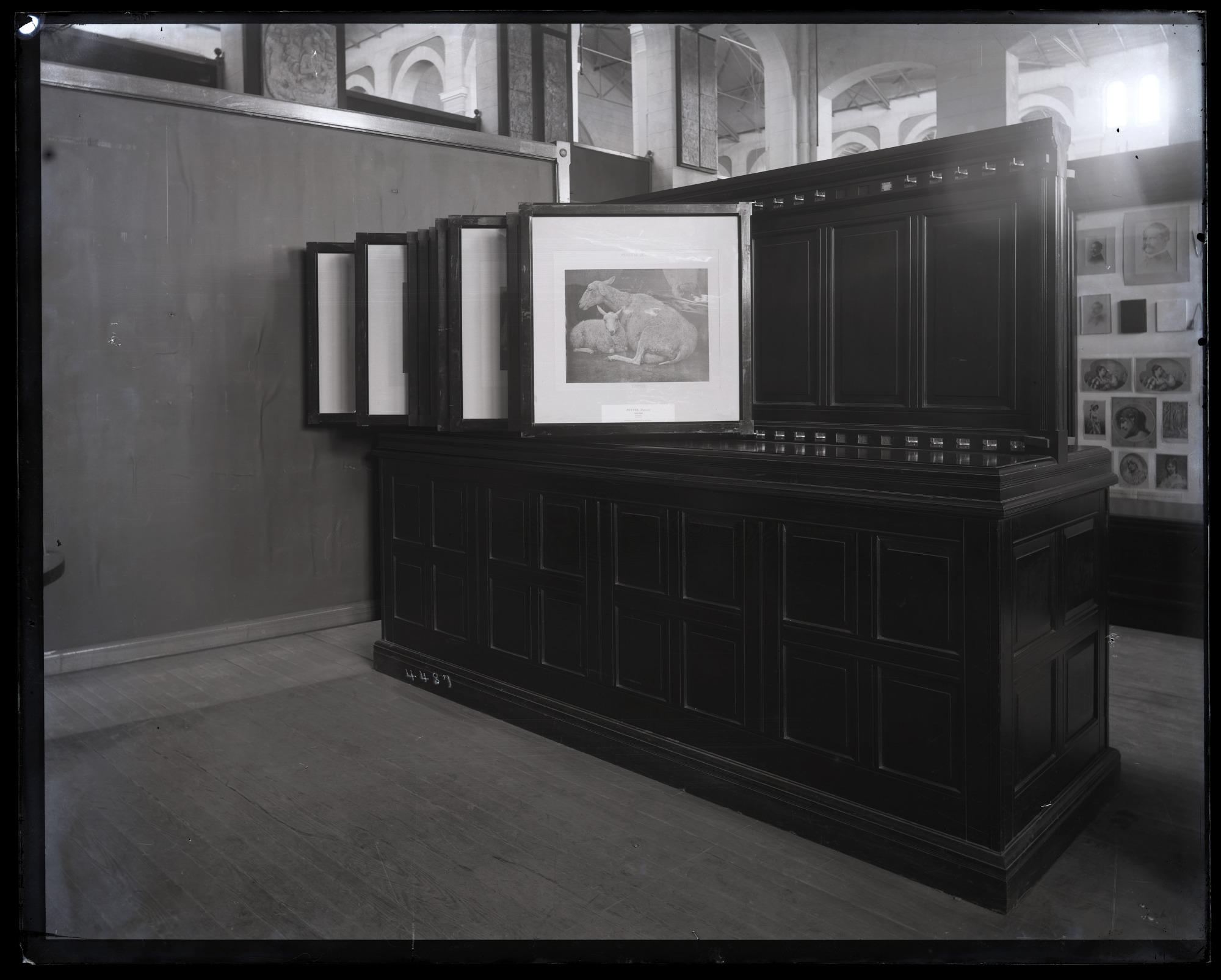 Exhibit case in the United States National Museum, now known as the Arts and Industries Building, featuring Graphic Arts materials.