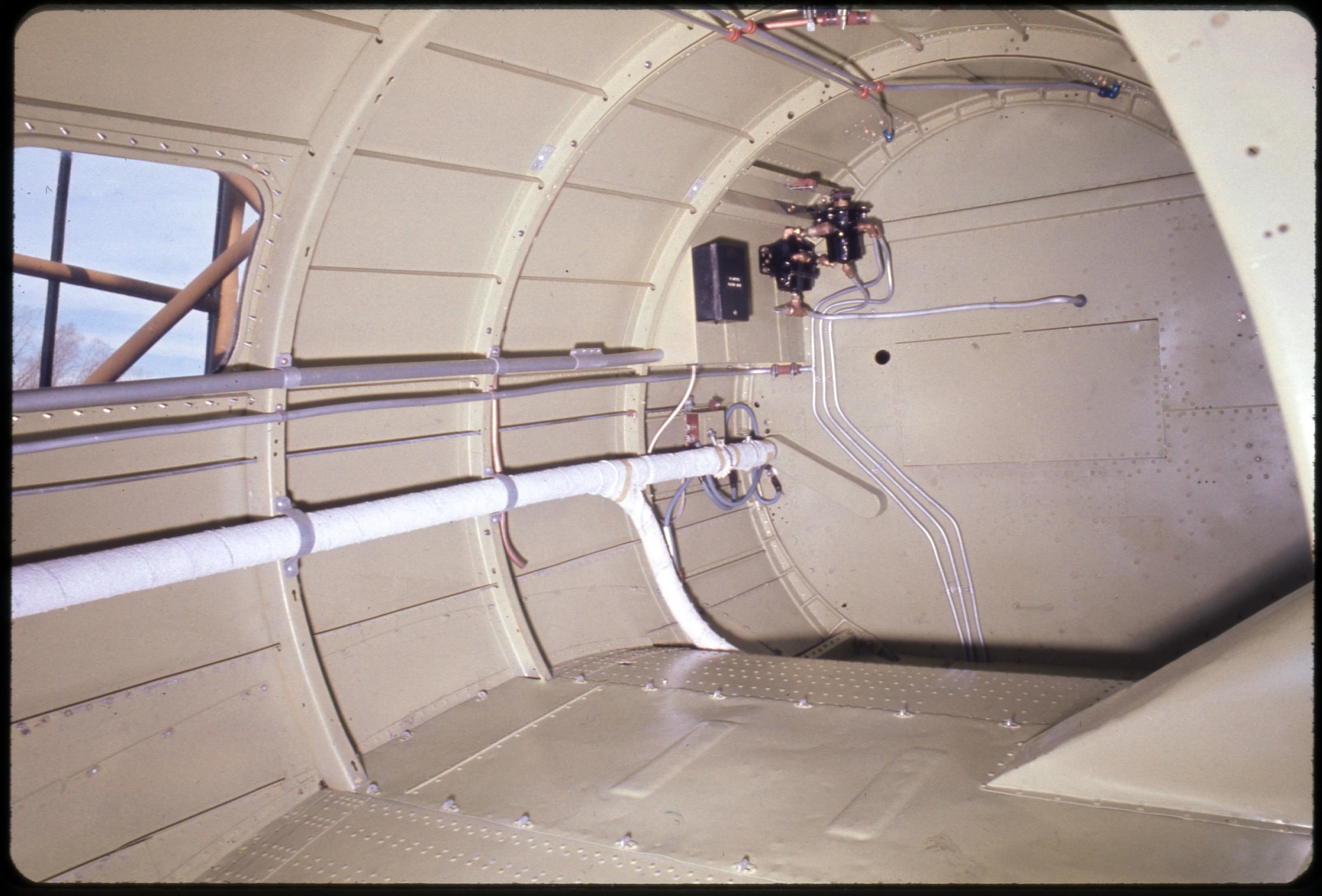 Interior view of Northrop 4A Alpha during installation at National Air and Space Museum.