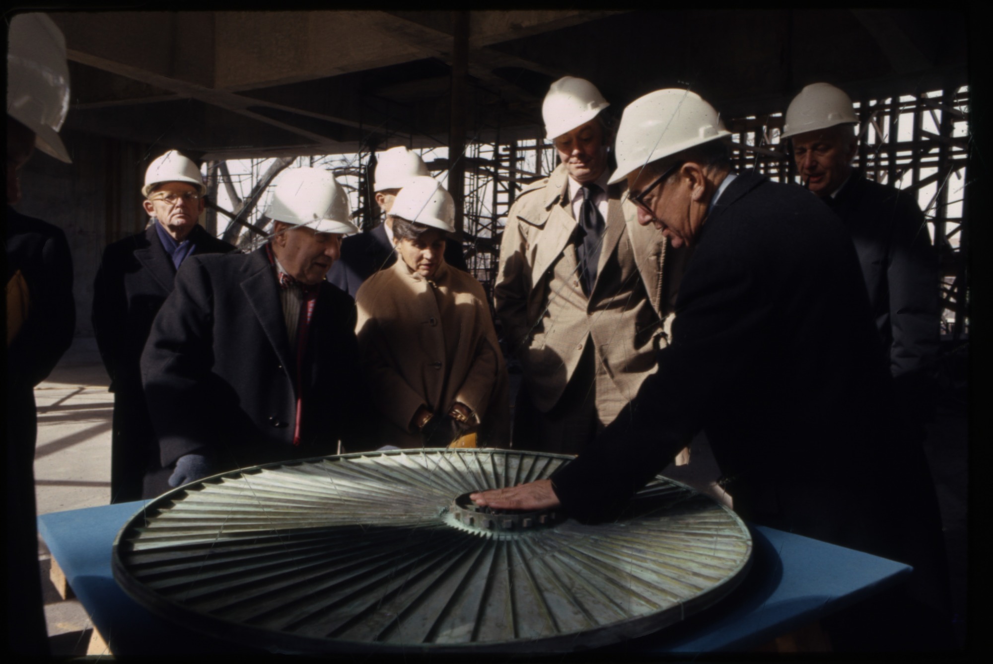 Progress shots of the construction of the Hirshhorn Museum and Sculpture Garden, with Hirshhorn Building Committee, and Joseph and Olga Hirshhorn.