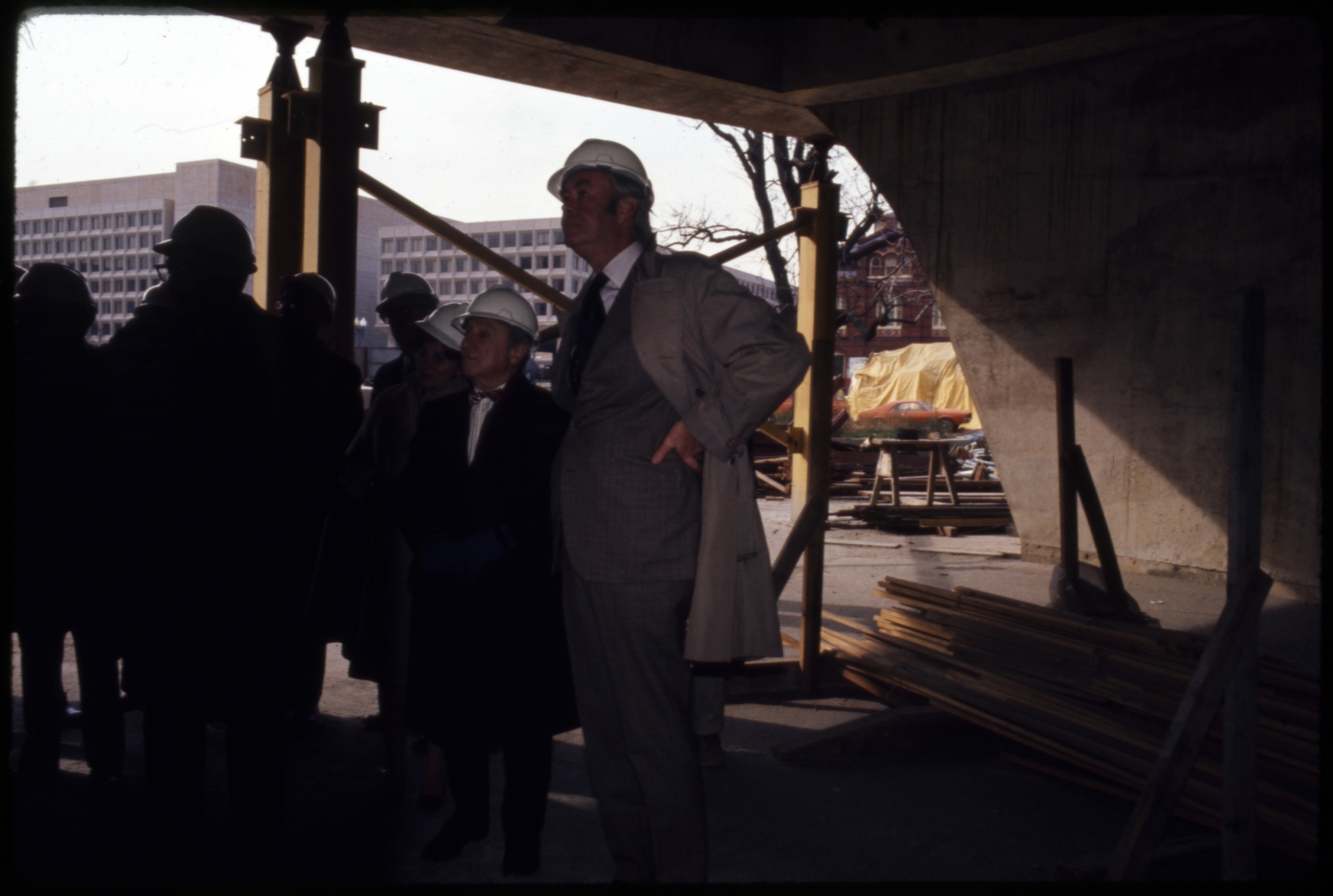Progress shots of the construction of the Hirshhorn Museum and Sculpture Garden, with Hirshhorn Building Committee, and Joseph and Olga Hirshhorn.