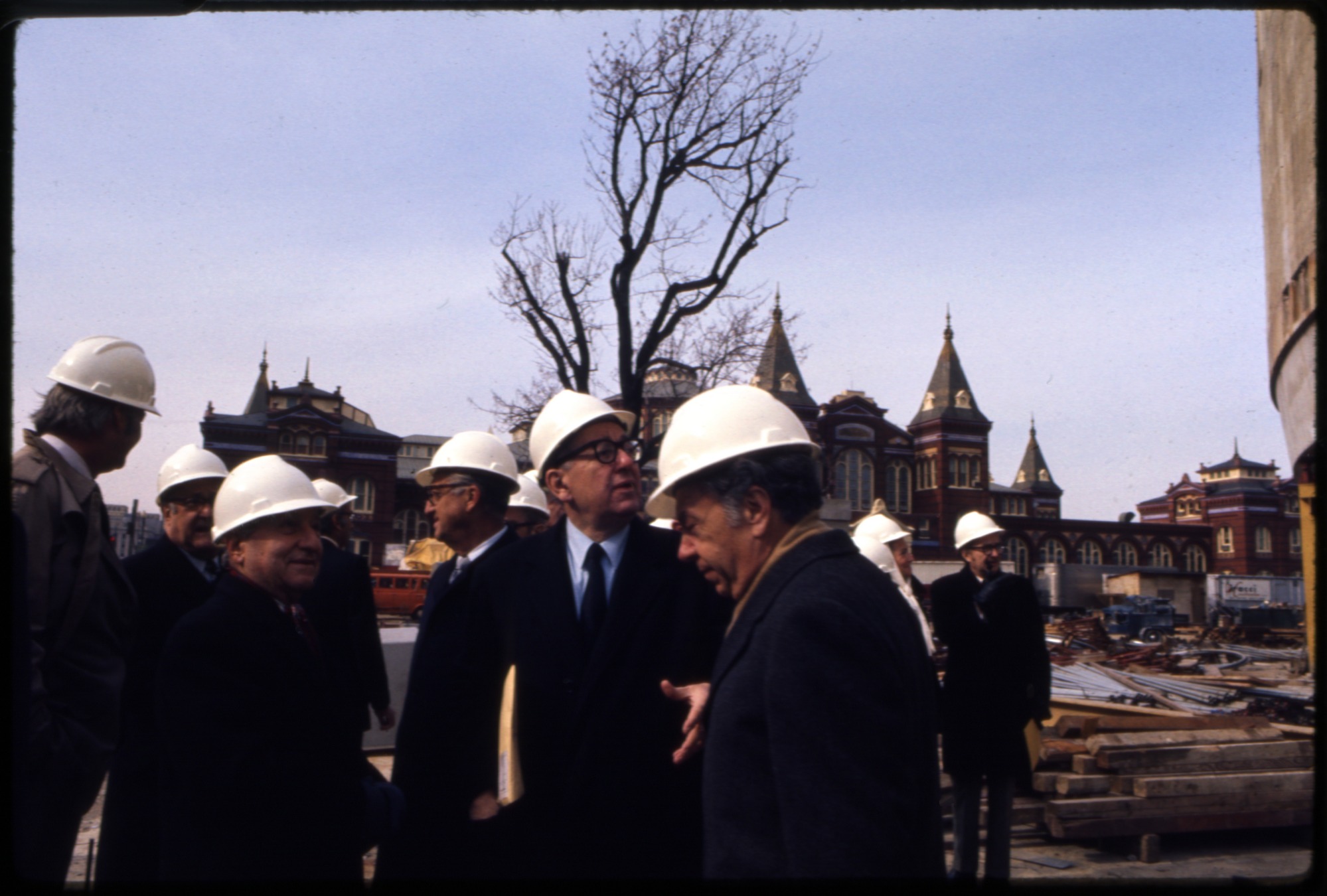Progress shots of the construction of the Hirshhorn Museum and Sculpture Garden, with Hirshhorn Building Committee, and Joseph Hirshhorn.