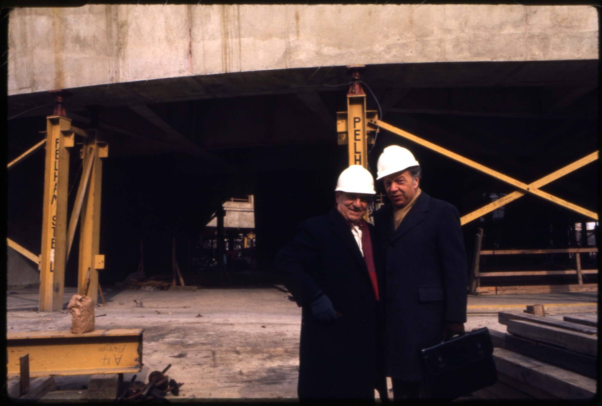 Progress shots of the construction of the Hirshhorn Museum and Sculpture Garden, with Hirshhorn Building Committee, and Joseph Hirshhorn.