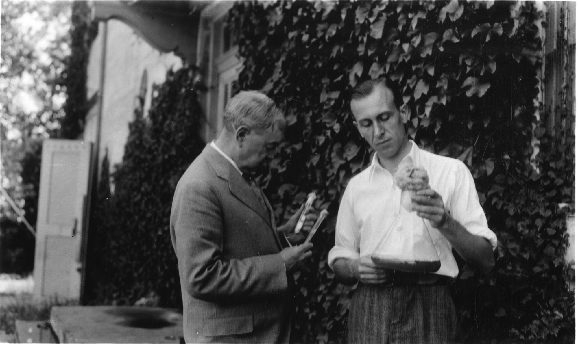 left to right: Edwin Emery Slosson (1865-1929), Director of Science Service, and O. E. May, U.S. Department of Agriculture chemist.
