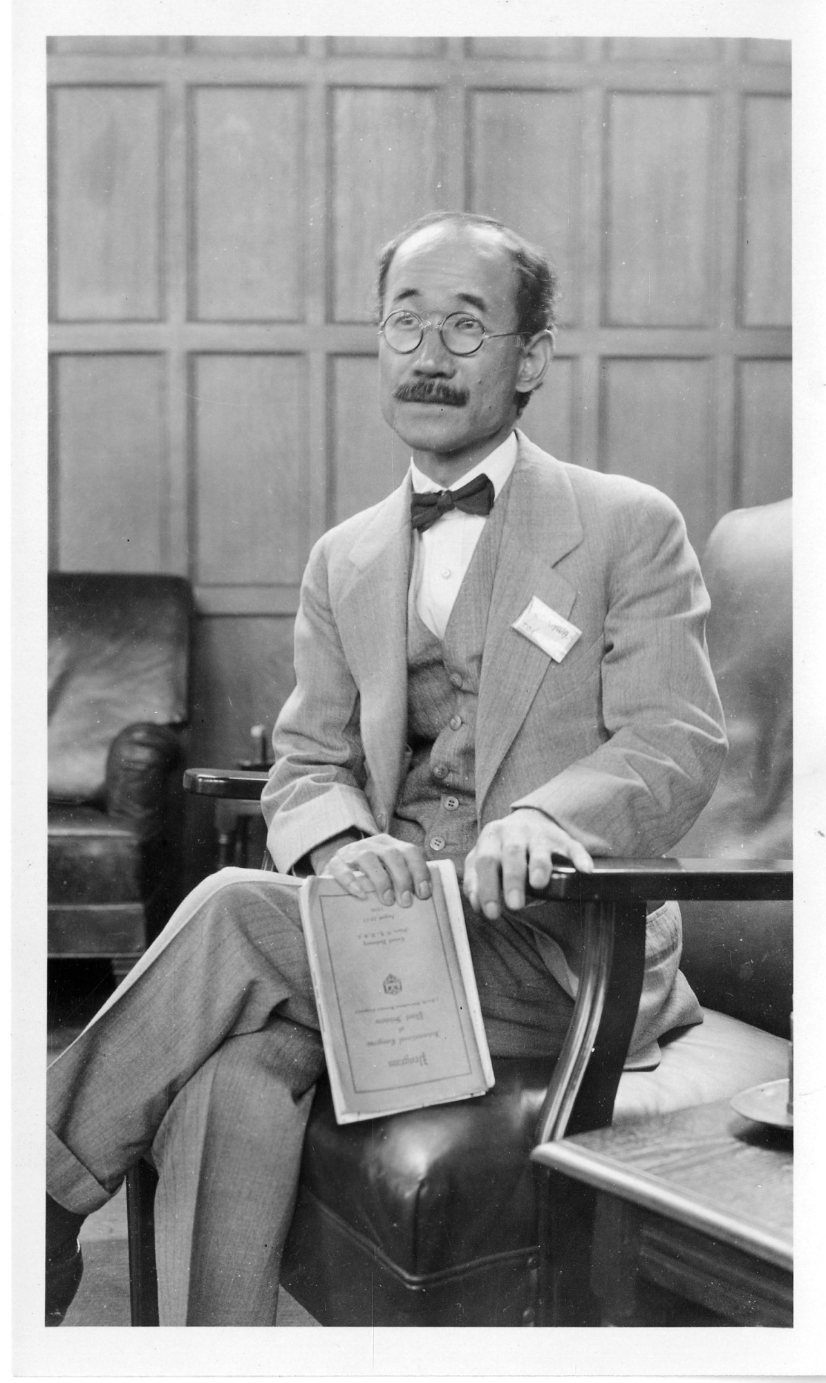 Mitsuhara Ishikawa (b. 1887) was a Japanese botanist and plant collector. He was photographed while attending the International Congress of Plant Sciences, Cornell University, August 16-23, 1926, and is holding a copy of the program.