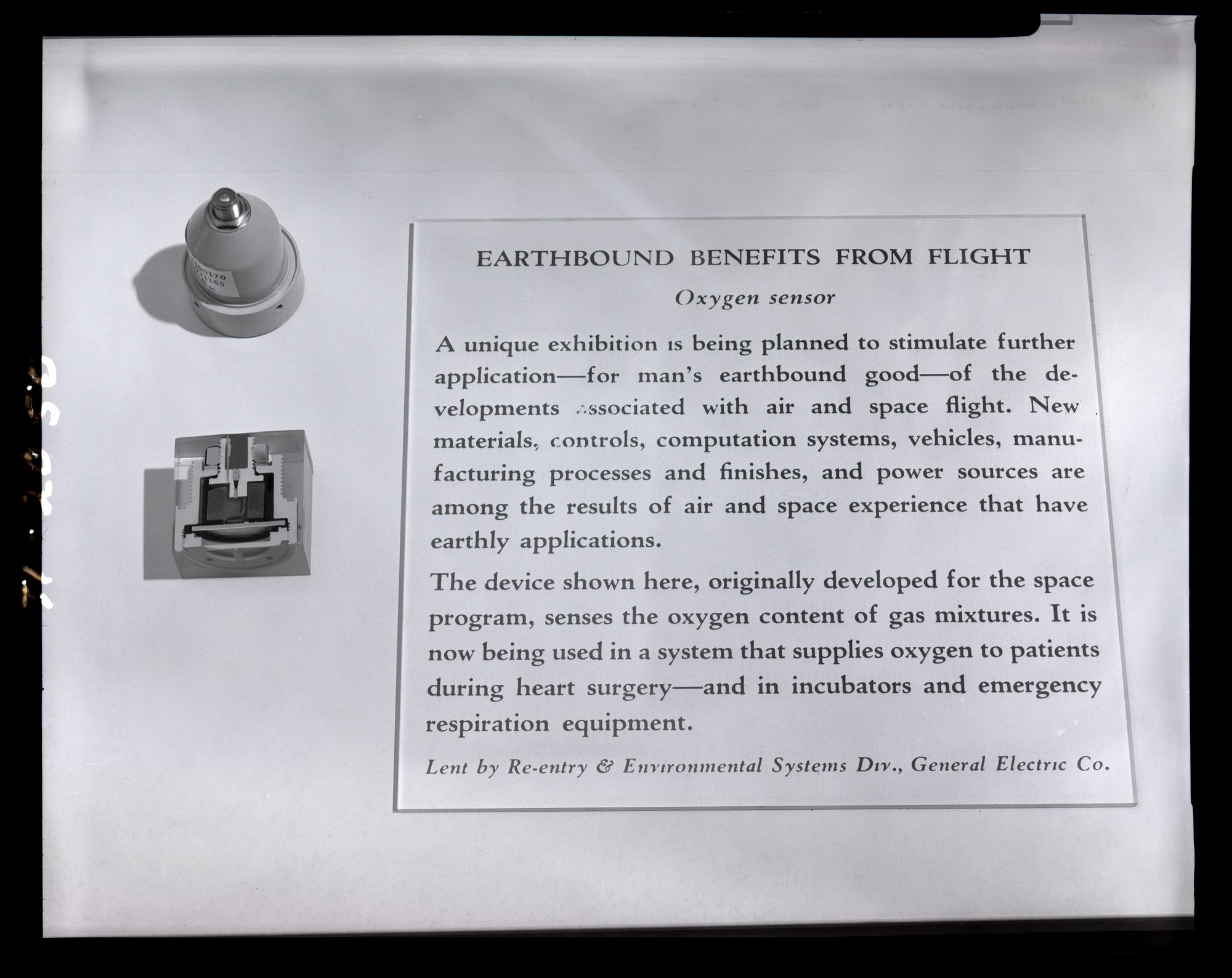 Preview of future National Air and Space Museum exhibitions, featuring oxygen sensors. Exhibit case located in the Smithsonian Institution Building, or Castle.
