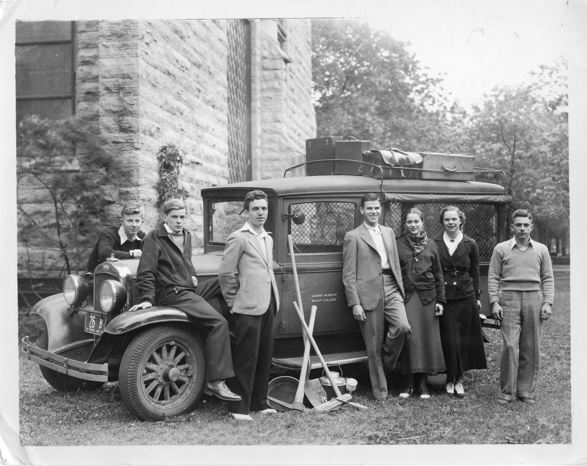 Beloit College archeological expedition members. Jordan Jeptha Markham (1916-2001), Thomas G. Coleman (1918-2007), Andrew Hunter Whiteford (1913-2006), Paul Homer Nesbitt (1904-1985), Barbara Rivet (1914-1990), Shirley Webb Kretschmer (1914-2016), and John William Bennett (1915-2005)