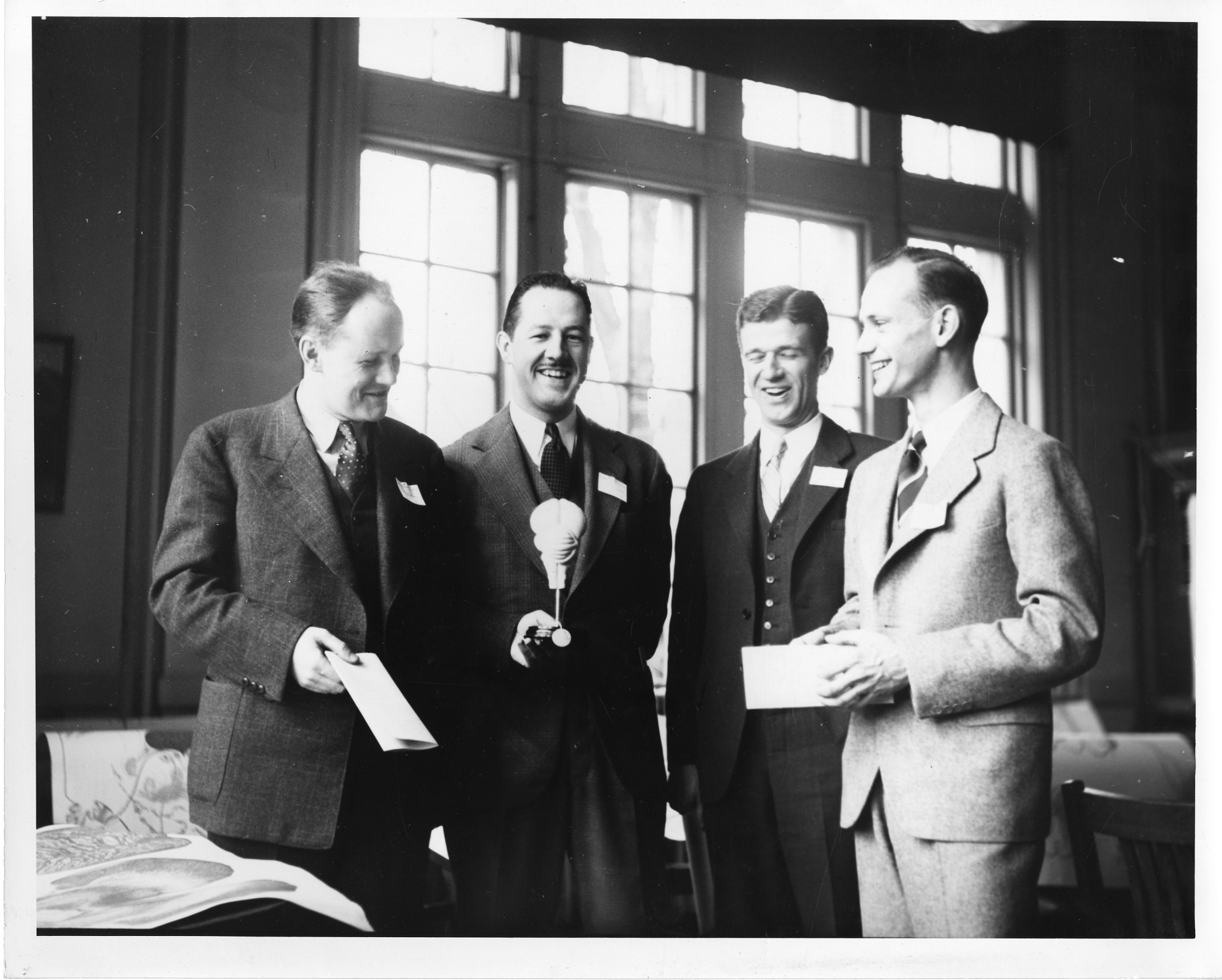 left to right: Carlyle Ferdinand Jacobsen (1902-1974), Professor of Psychology, Yale University; Stanley Smith Stevens (1906-1973), Professor of Psychology, Harvard University; Ernest Ropiequet Hilgard (1904-2001), hypnosis expert and Professor of Psychology, Stanford University; and Don Marquis, Professor of Psychology, University of Michigan. The photograph was taken April 1937 at a meeting of American Psychological Association.