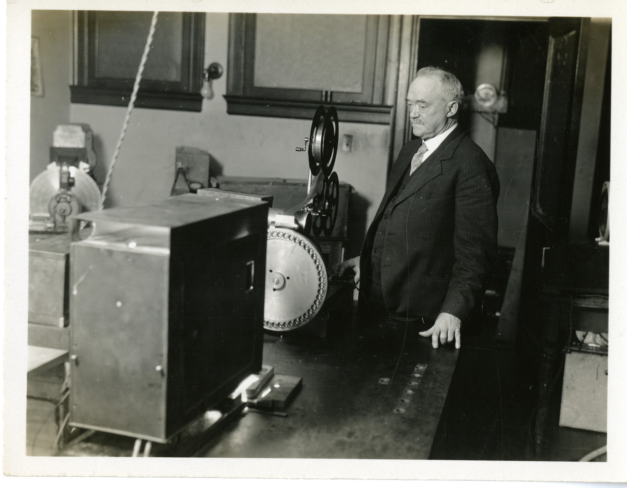 Charles Francis Jenkins (1867-1934), with his motion picture invention.