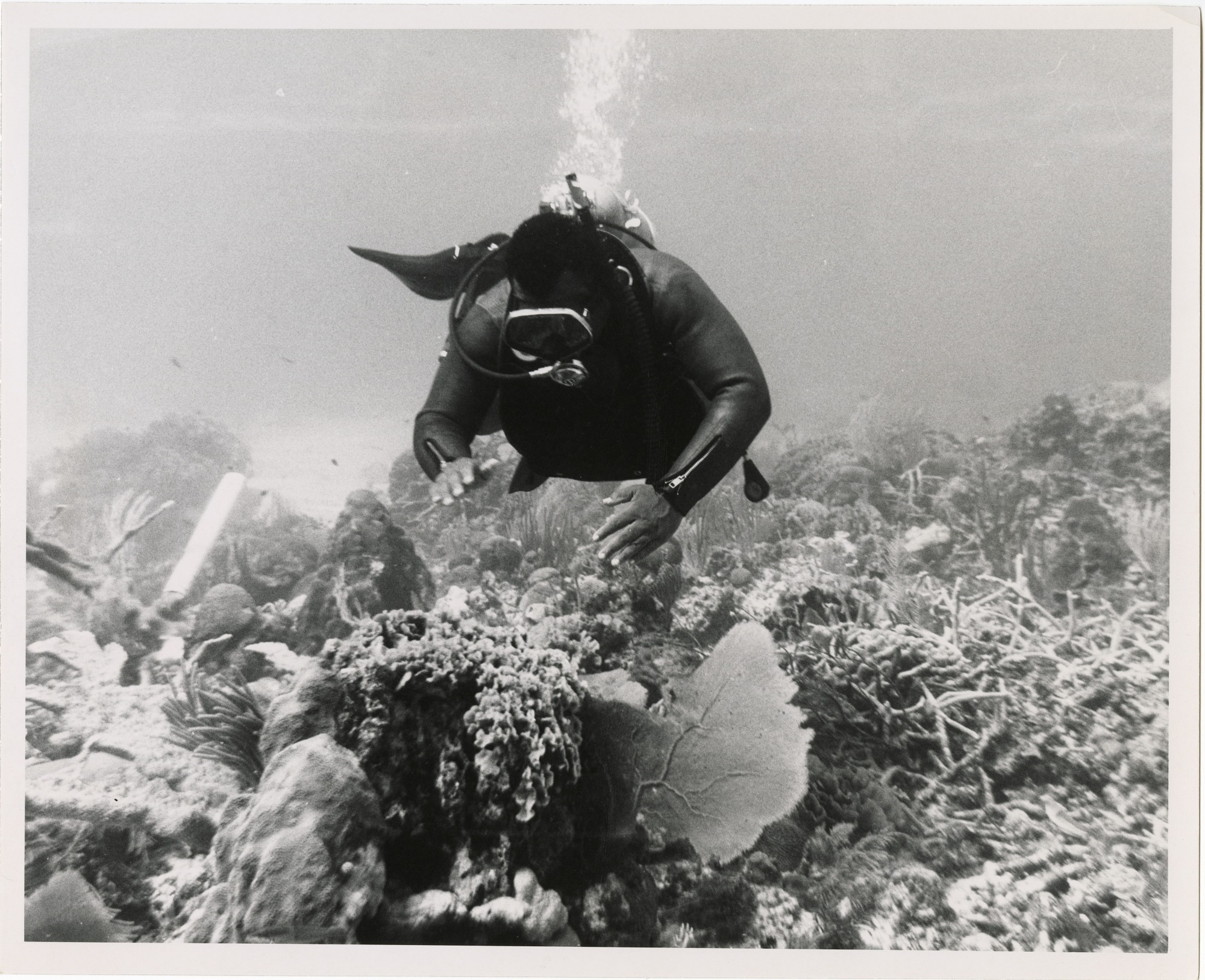 John R. Kinard, Director of the Anacostia Museum (1967-1989), dives near a Caribbean coral reef.