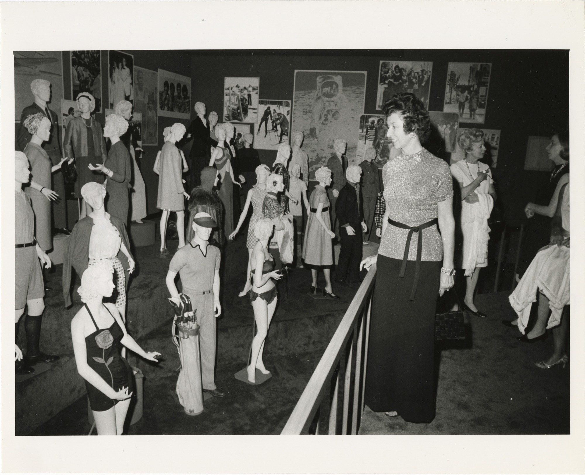 Opening night visitors view a parade of recent fashions in the "Suiting Everyone" exhibit at the National Museum of History and Technology, now known as the National Museum of American History. The exhibition opened September 23, 1974 and depicts 200 years of evolution and revolution in design, production, and marketing of American clothing.