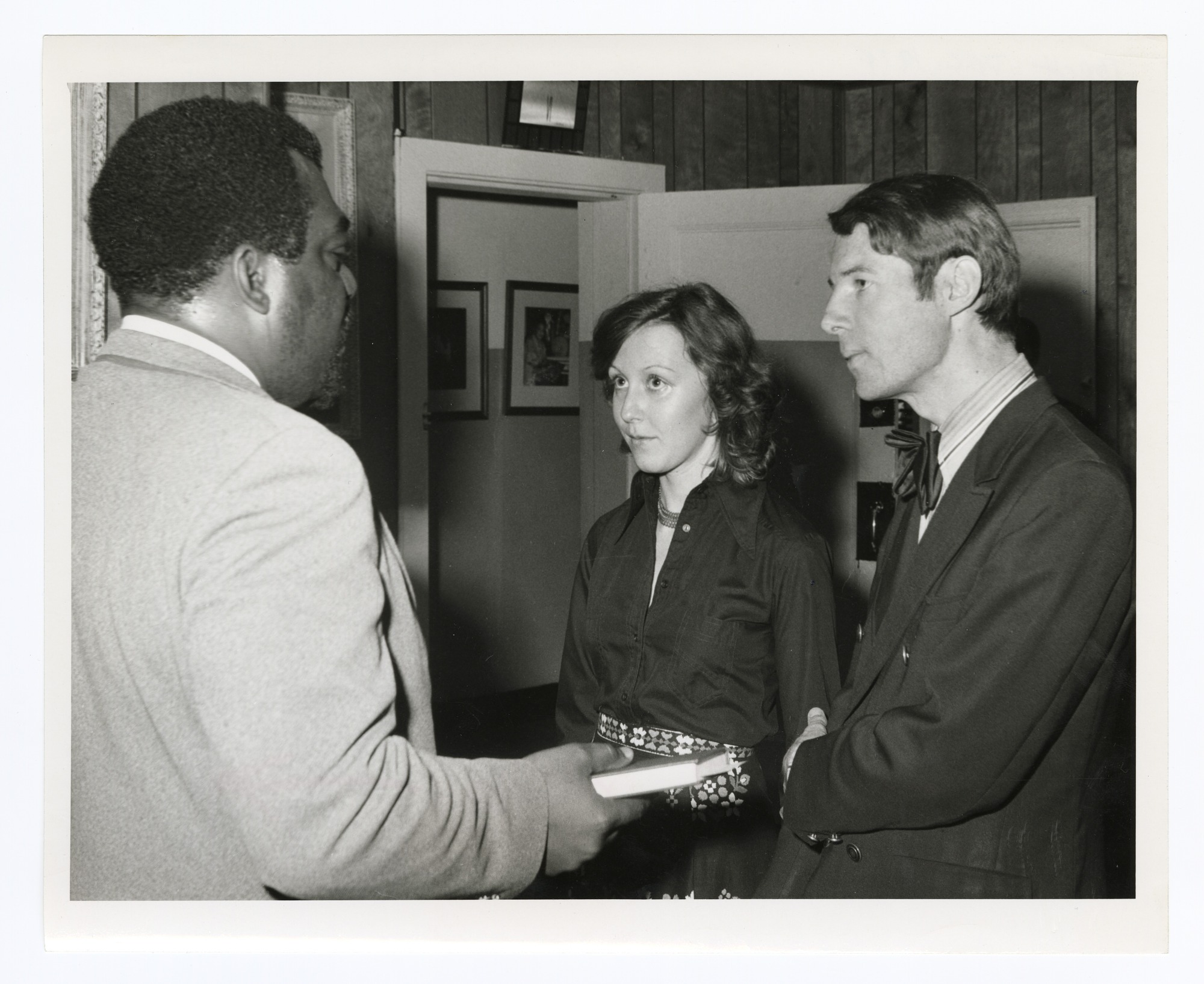 John R. Kinard, director of Anacostia Neighborhood Museum (ANM), performs a wedding ceremony for ANM photographer Michael F. Fischer and Evelyne Oettli. The ceremony took place in Kinard's office.