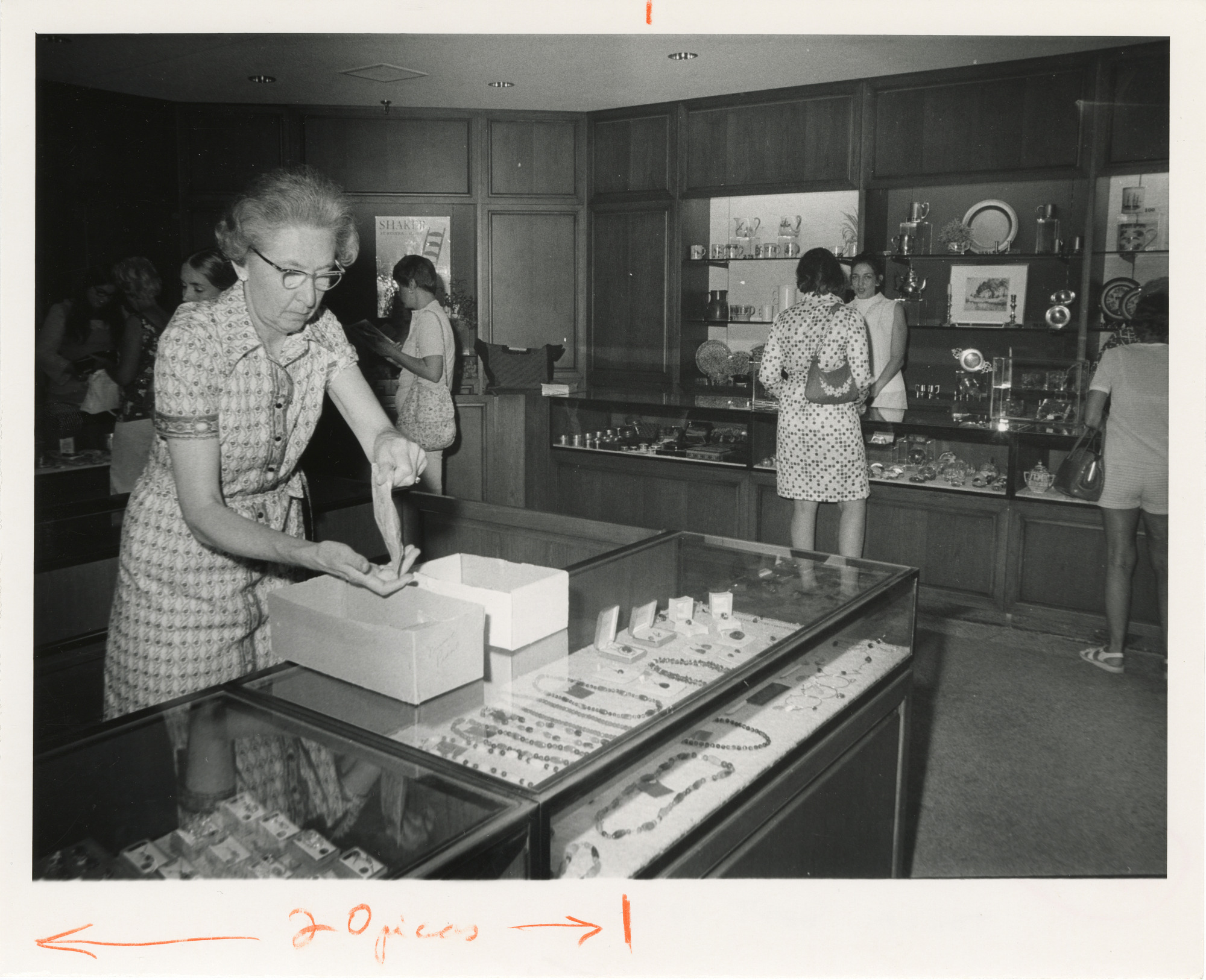 Helen Stephens checks in jewelry at Museum Shop in National Museum of History and Technology, now known as National Museum of American History.