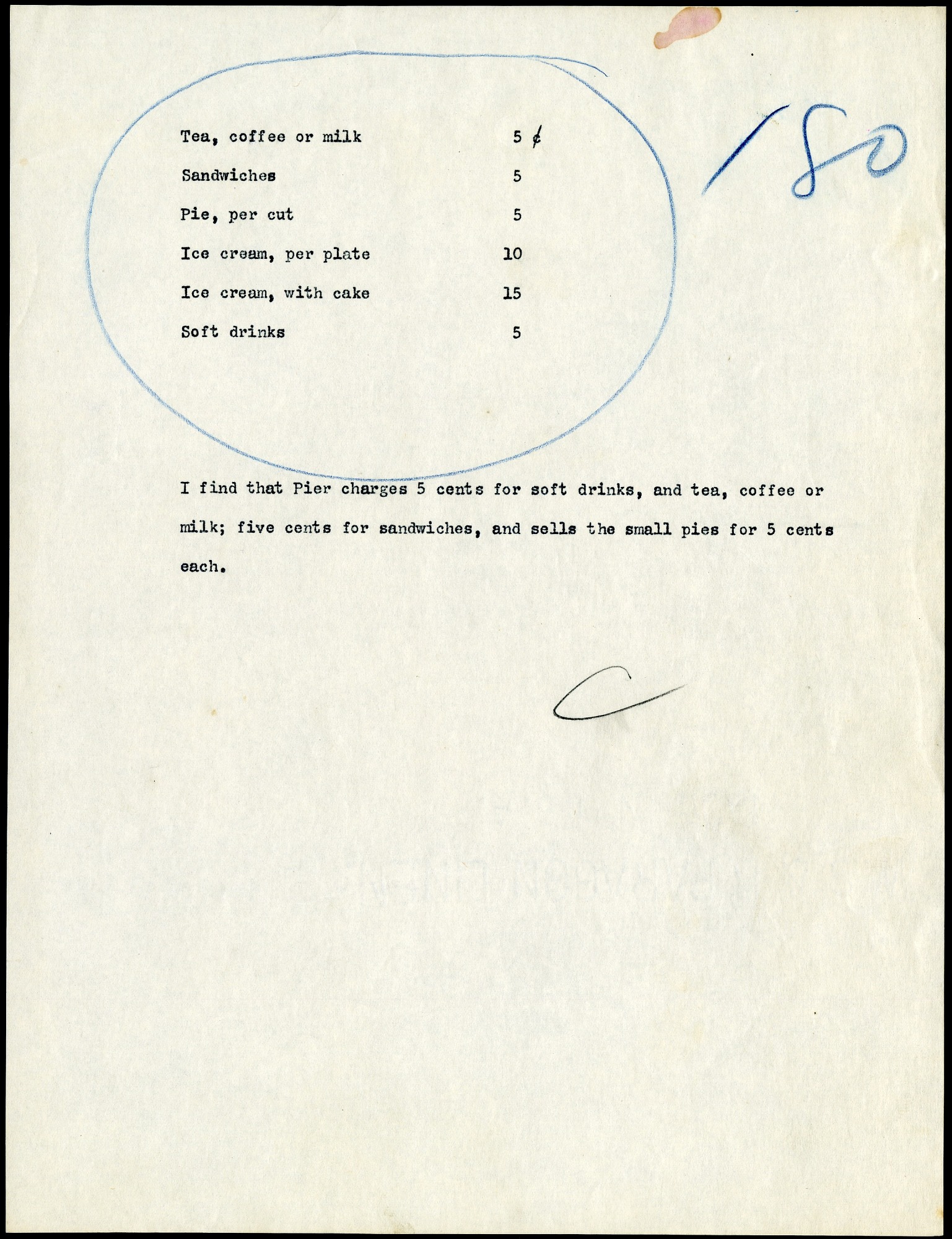 Bill of Fare for a Restaurant at National Zoological Park