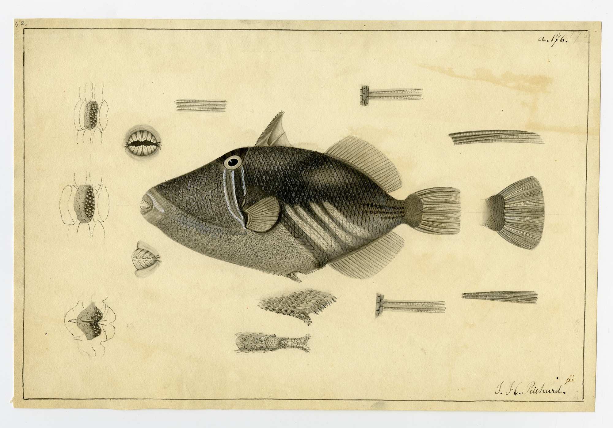Drawing of a Balistoid by John Richard, based on sketches of fish observed or collected during the United States Exploring Expedition Collection, 1838-1842.
