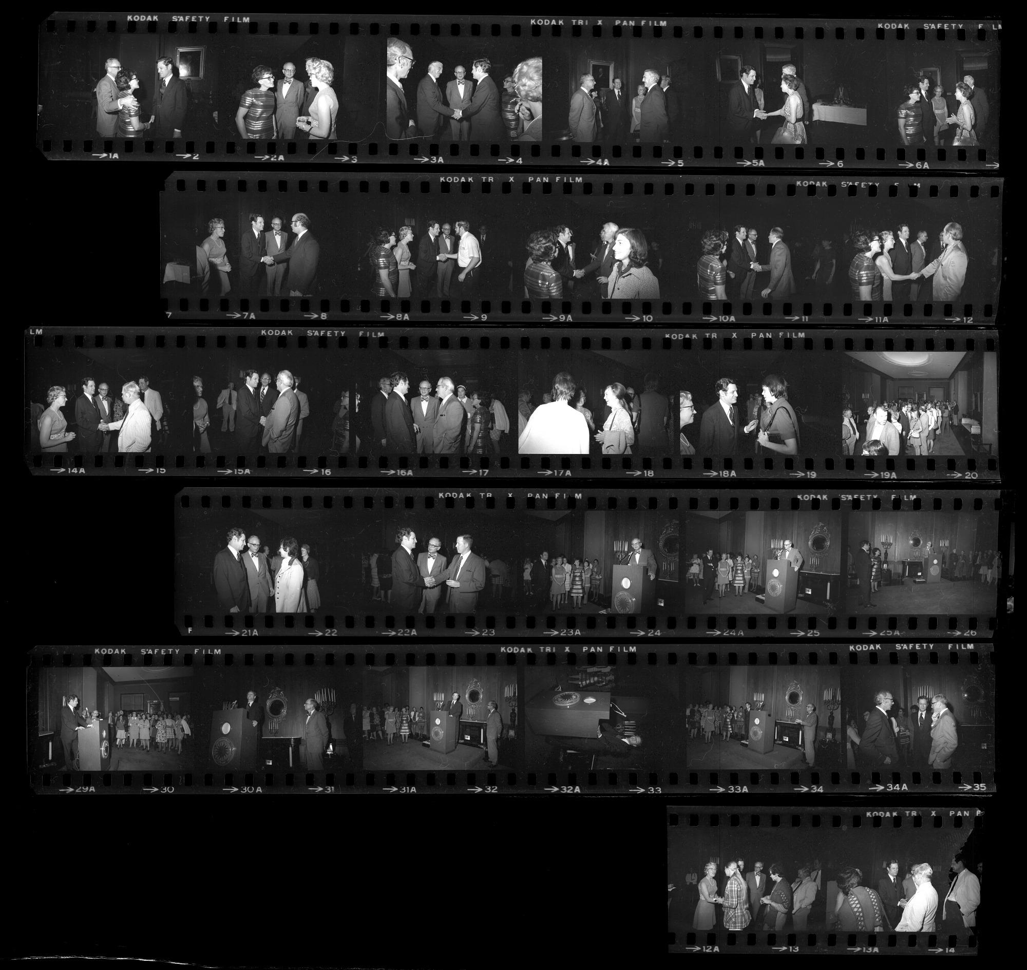 Reception for Brooke Hindle, incoming director of the National Museum of History and Technology (NMHT), now known as the National Museum of American History, in the Presidential Reception Suite at NMHT, with outgoing director Daniel J. Boorstin, and consultant to the Secretary Frank A. Taylor, former Director General of Museums.