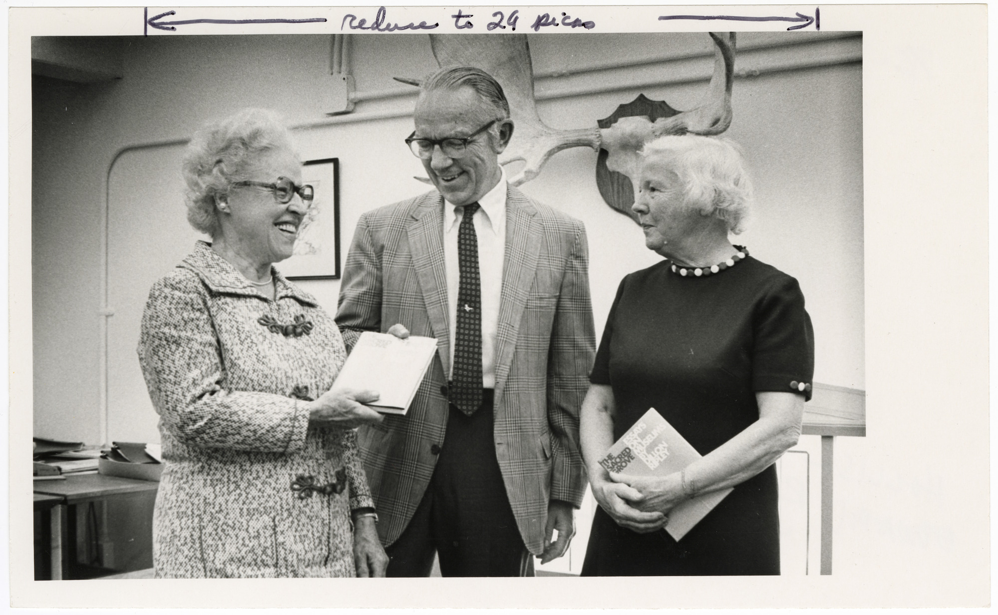 Edward Rivinus, director of SI Press, with SI Press volunteer team Jennie Clyde Hollis and Roberta Downes.