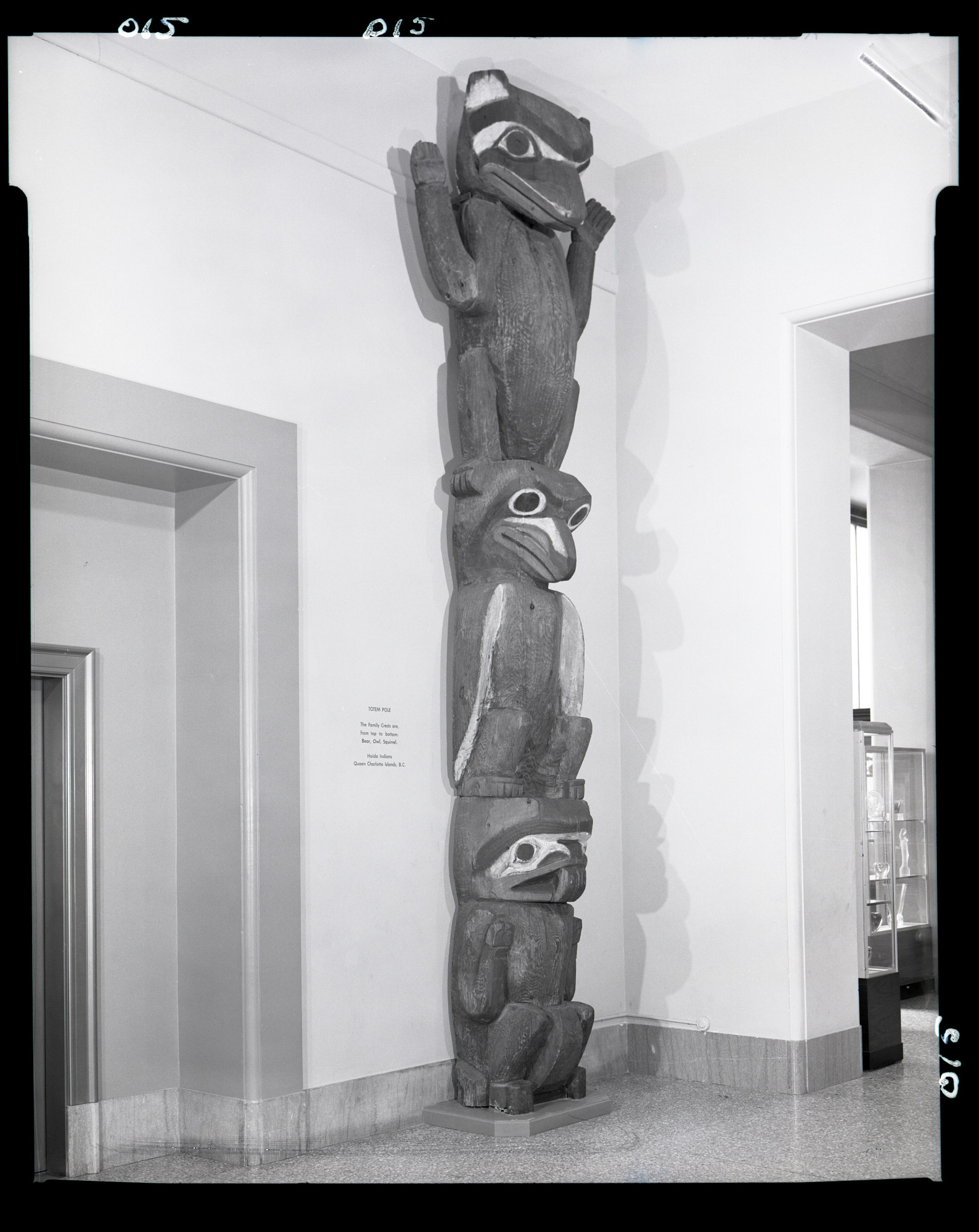 Museum of Natural History - North American Indians and Eskimos (Hall 9), Bella Coola (Nuxalk) Family Crest Totem Pole with Bear, Owl, Squirrel