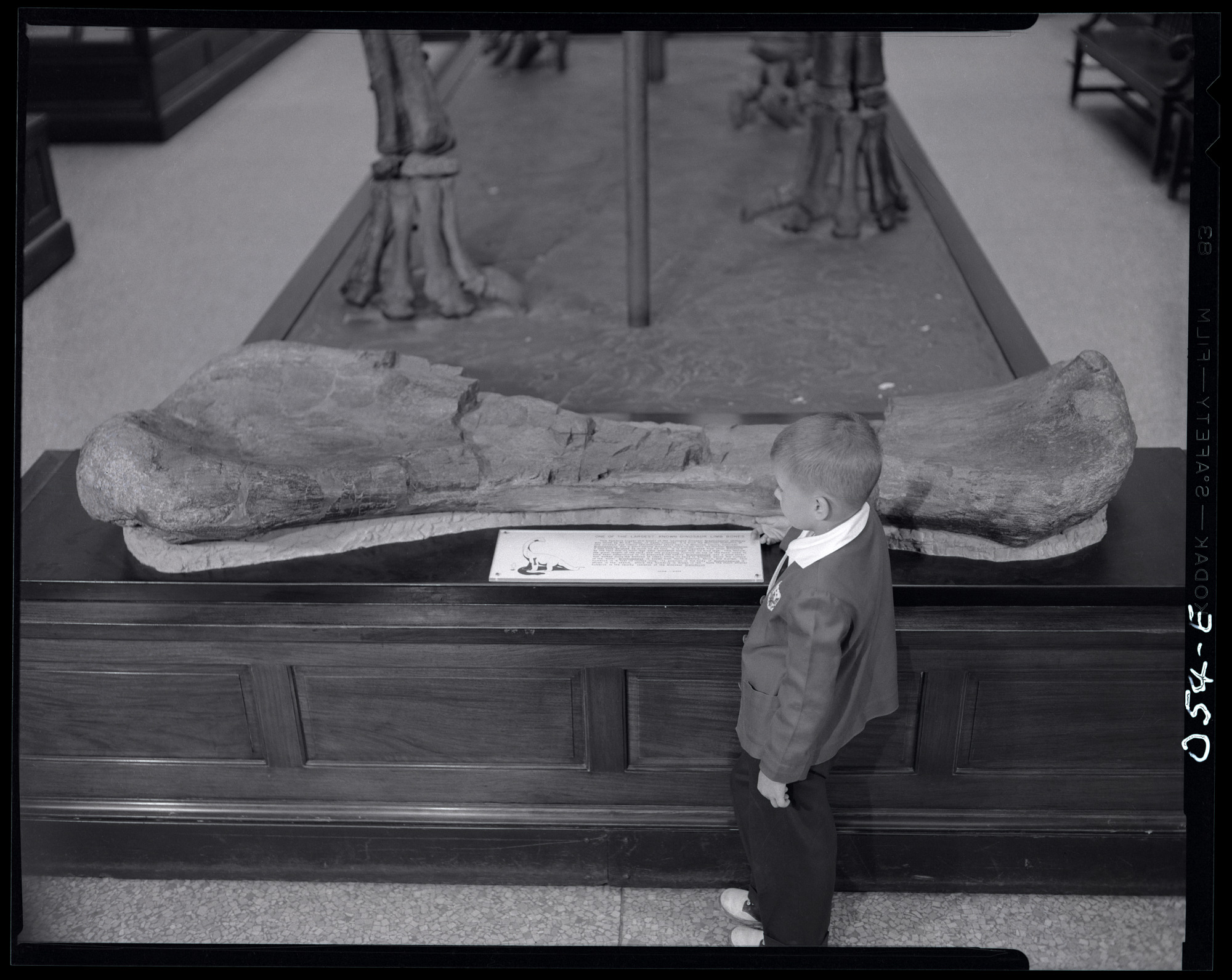 Museum of Natural History - Young Museum Visitor Views Dinosaur Bone Exhibit