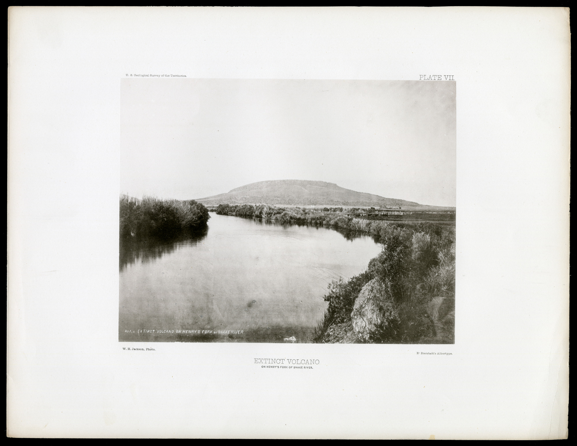 Pictured is an extinct volcano. This image was taken as part of the Department of the Interior's U.S. Geological Surveys of the Territories. William Henry Jackson, then a budding photographer, took thousands of photographs for the survey, most notably the first images of the headwaters of the Yellowstone River.