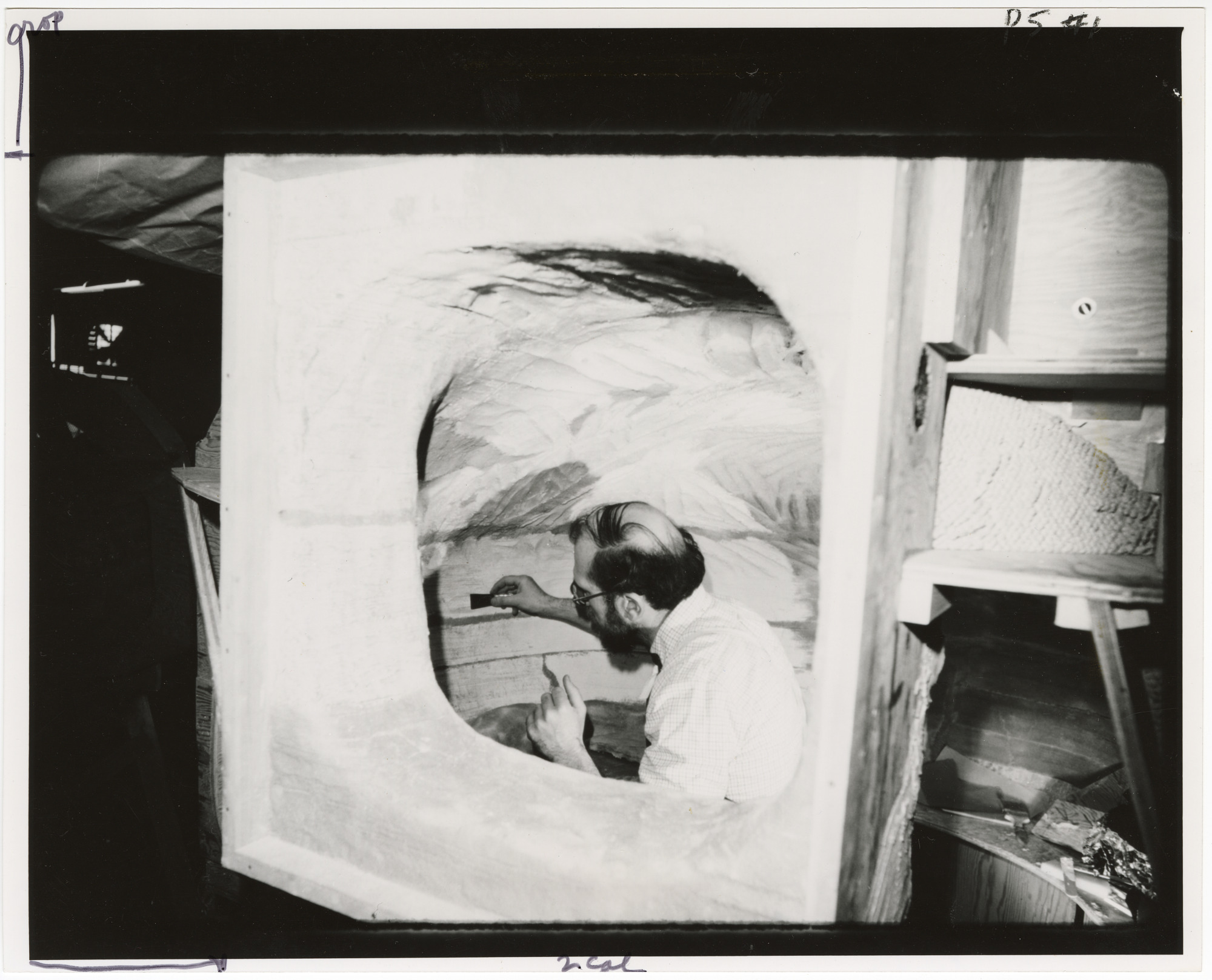James Reuter, modelmaker in the Office of Exhibits Central, refines the interior of an early Bronze Age tomb model for a new permanent exhibit hall about the rise of Western civilization at National Museum of Natural History.
