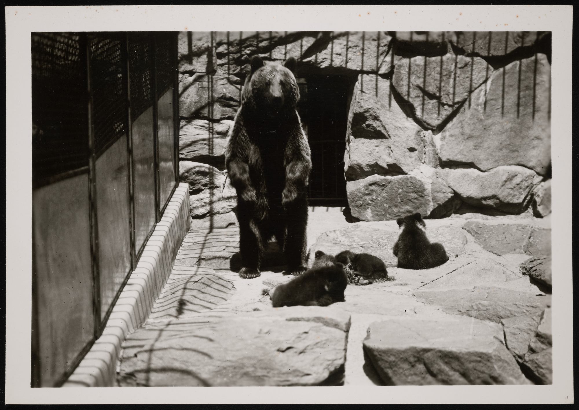 European brown bear mother, "Molly," and three cubs born at the National Zoological Park.