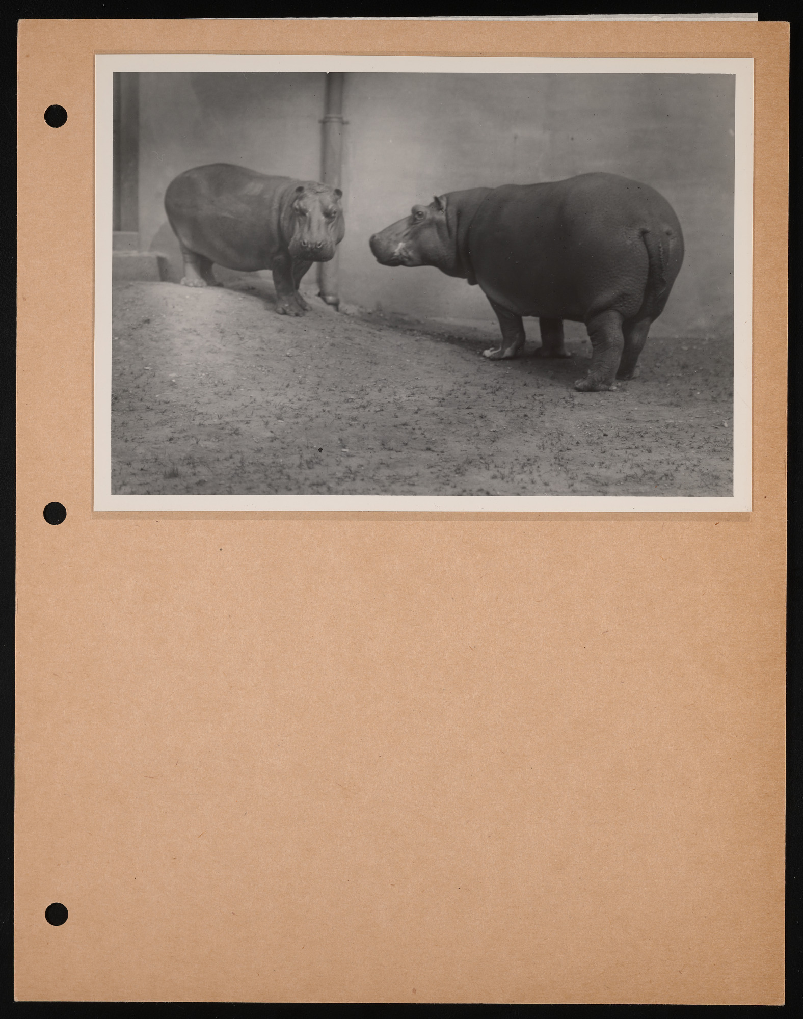 Young male (900lbs.) and female (1800lbs.) Nile hippopotamuses in their enclosure located next to the Lion House.