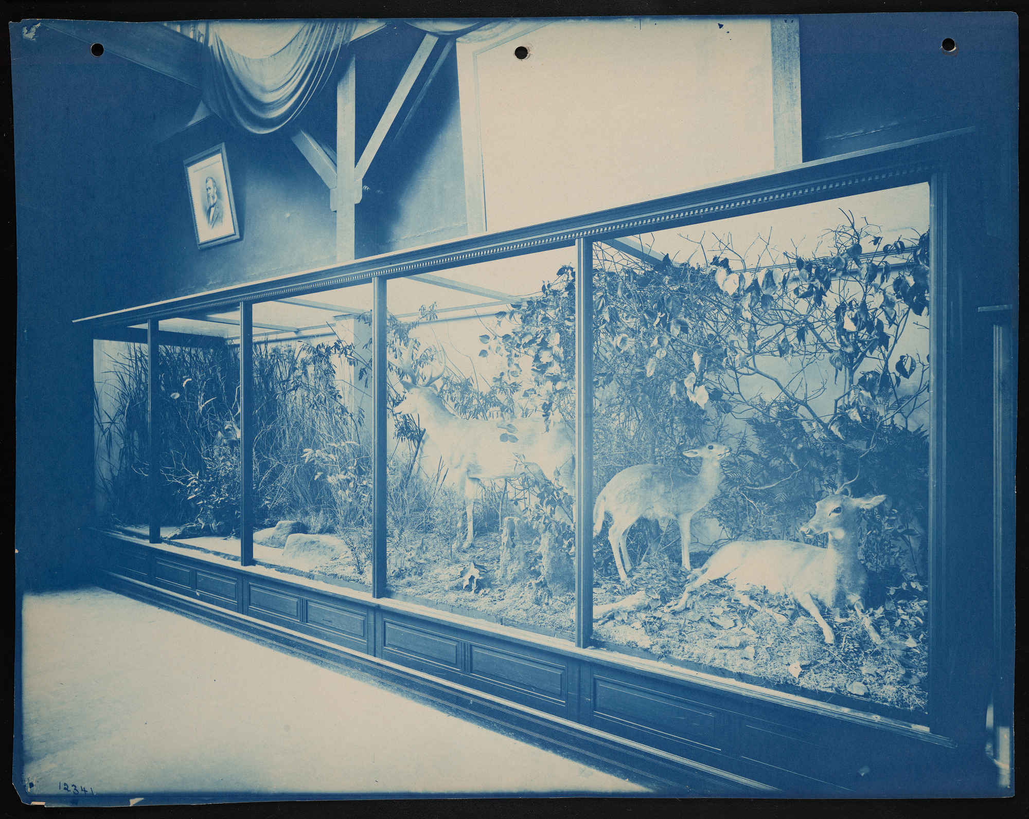 Interior view, Smithsonian Institution and United States National Museum exhibits in the United States Government Building, featuring Department of Mammals.