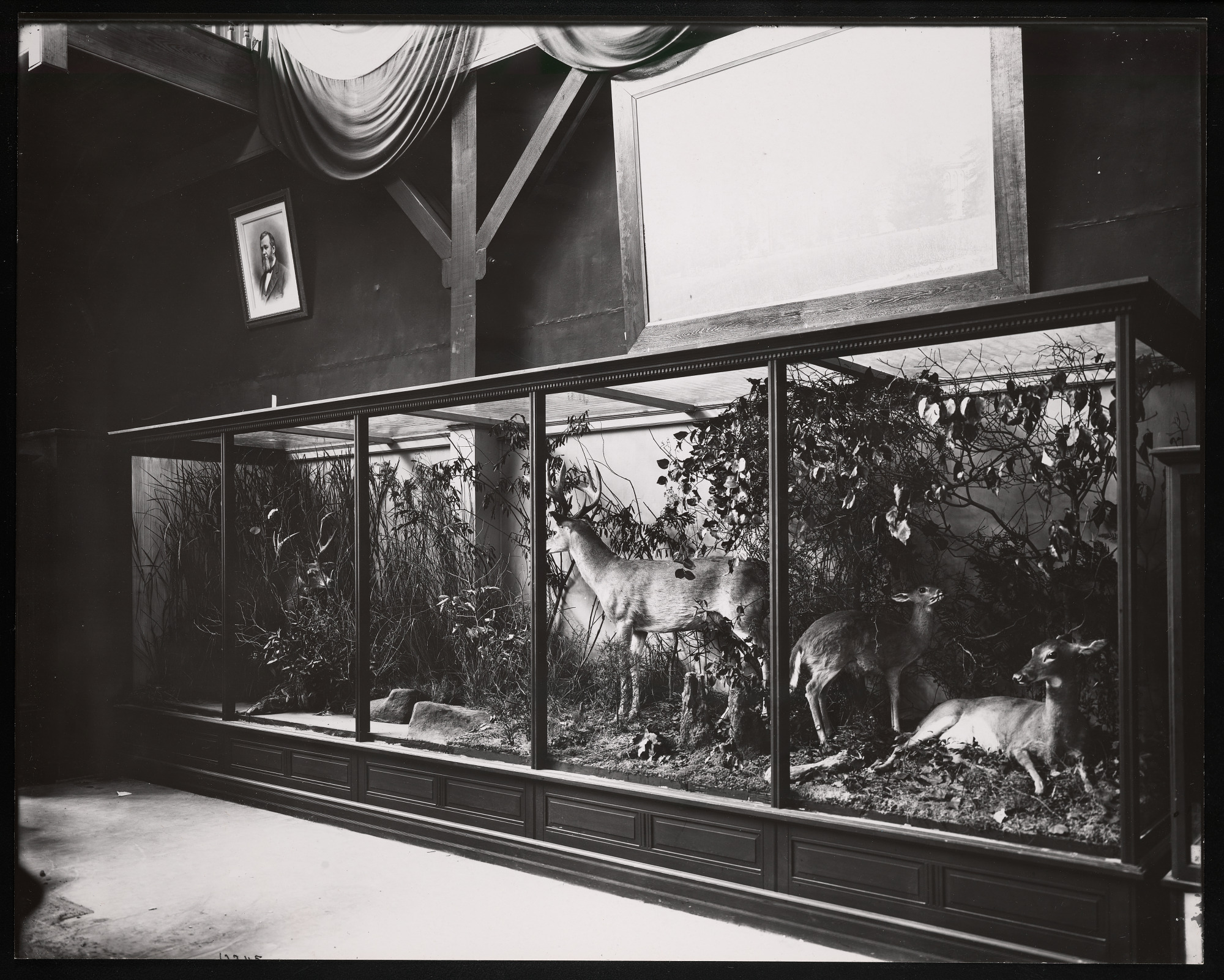 Interior view, Smithsonian Institution and United States National Museum exhibits in the United States Government Building, featuring Department of Mammals.