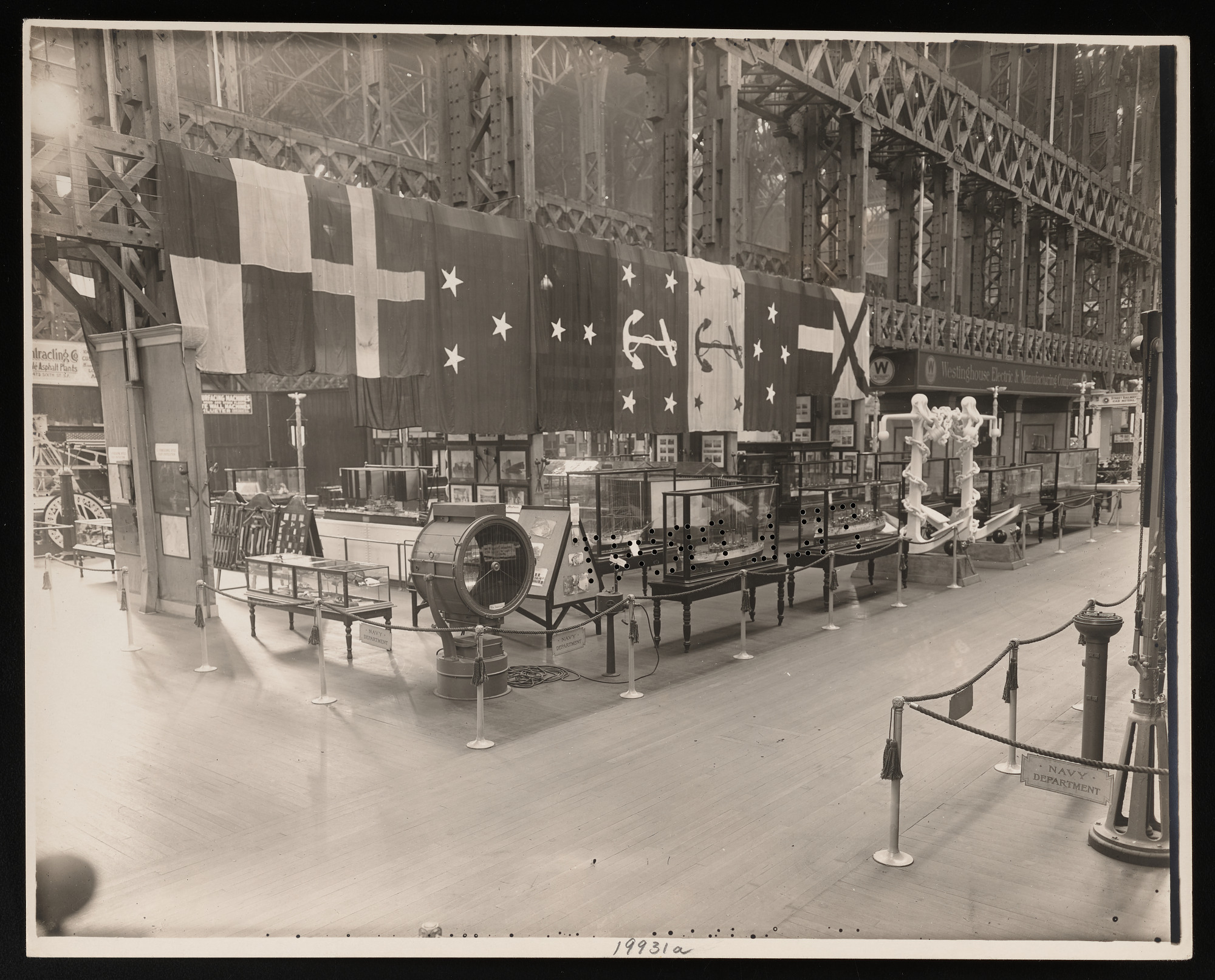 Interior view, Navy Department exhibits in the Palace of Machinery.
