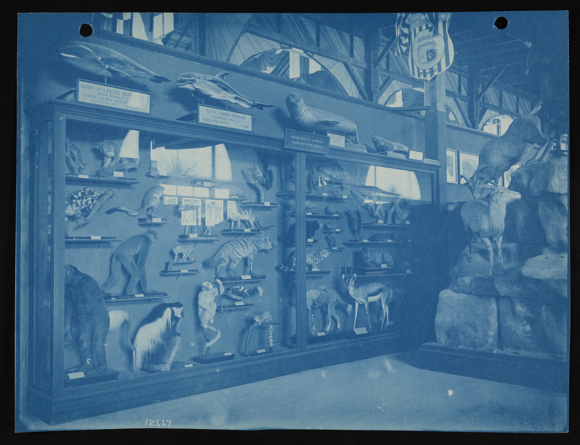 Interior view, Smithsonian Institution United States National Museum exhibits in the United States Government Building, featuring Department of Mammals.