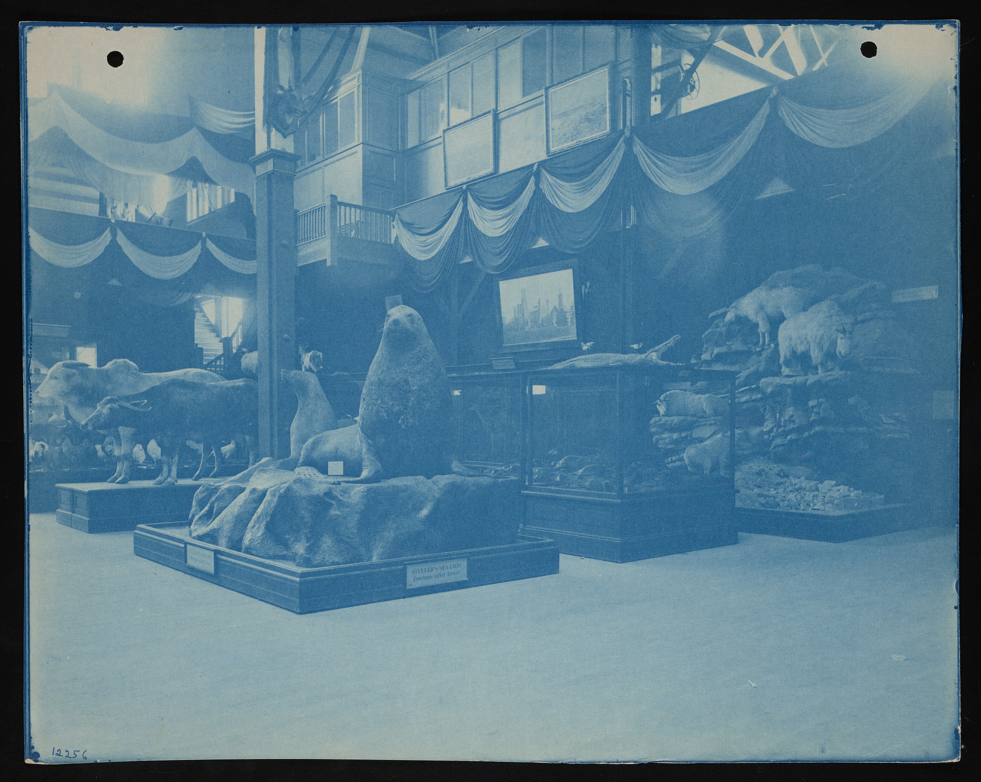 Interior view, Smithsonian Institution and United States National Museum exhibits in the United States Government Building, featuring Department of Mammals.