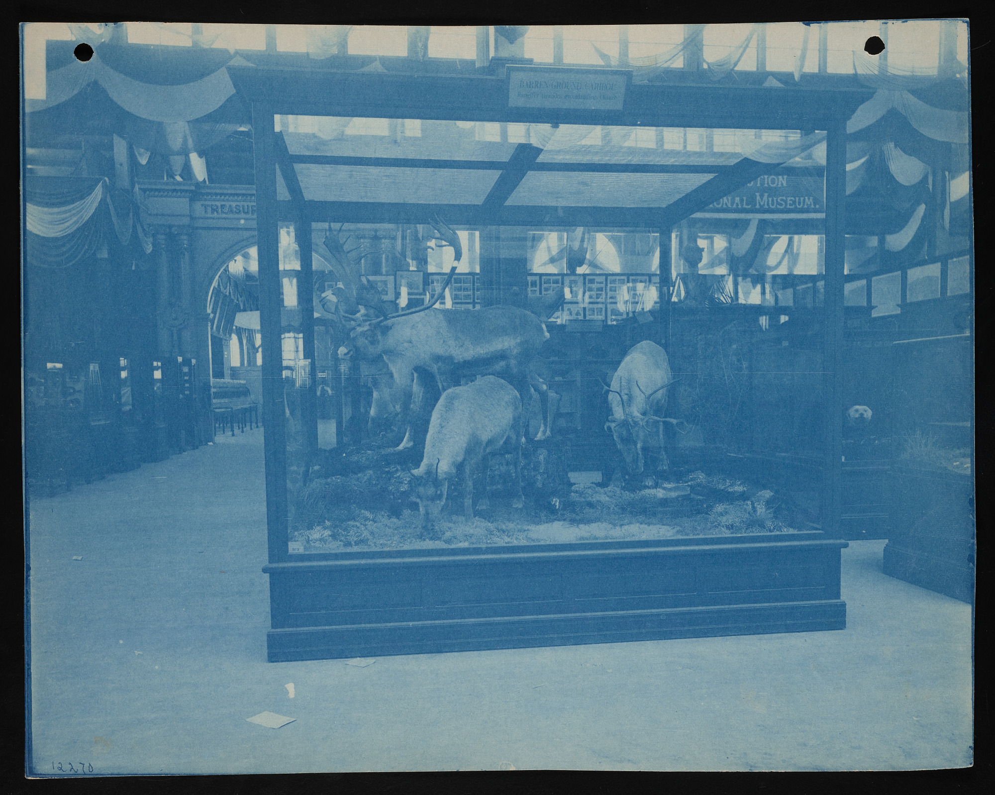 Interior view, Smithsonian Institution and United States National Museum exhibits in the United States Government Building, featuring Department of Mammals.