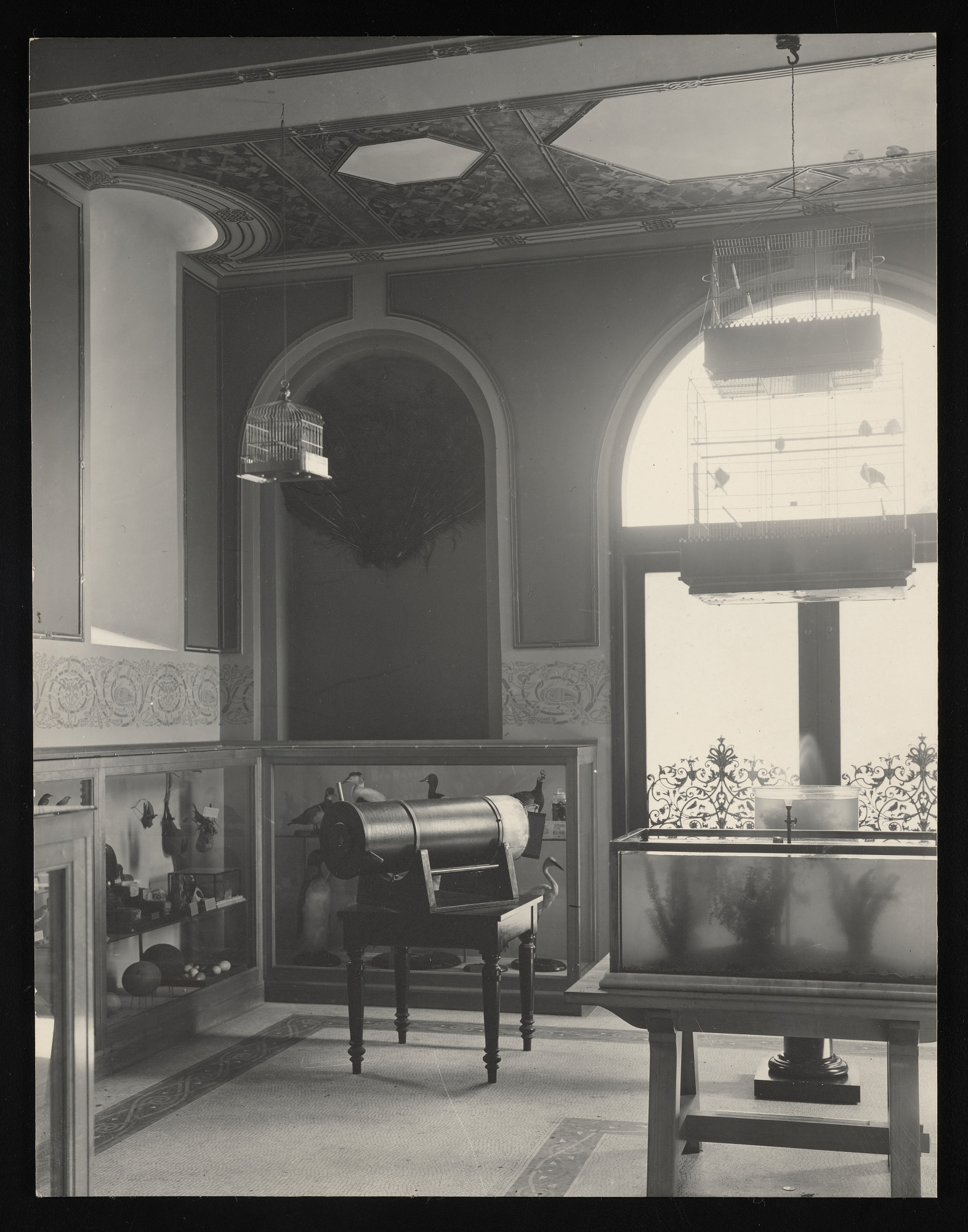 Interior view, Children's Room in the South Tower of the Smithsonian Institution Building, or Castle, with kaleidoscope designed by Secretary Langley which had live fish swimming in the triangular tank at the end in view at left.