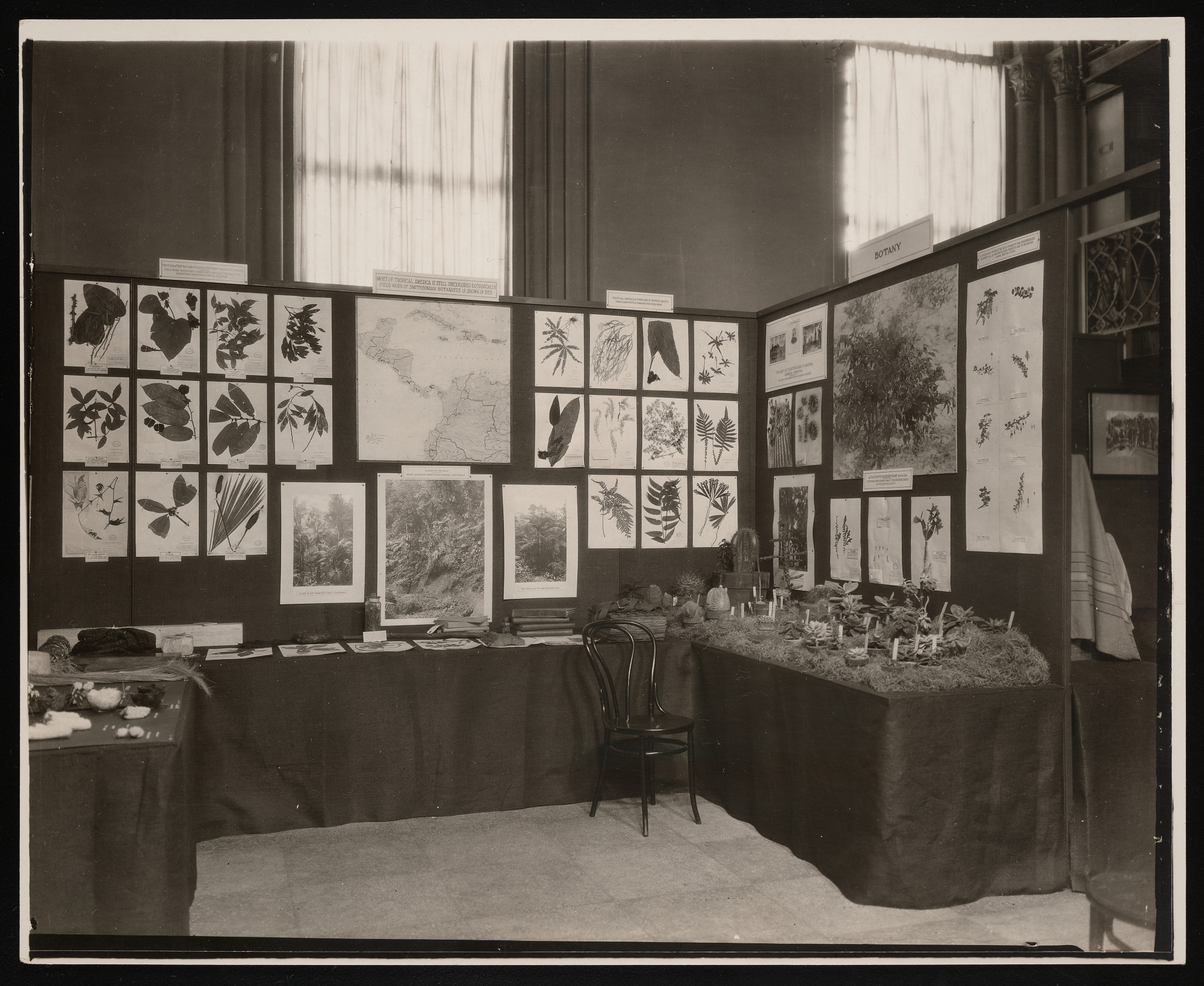 Interior view, botany exhibit and herbarium in the Smithsonian Institution Building, or Castle.
