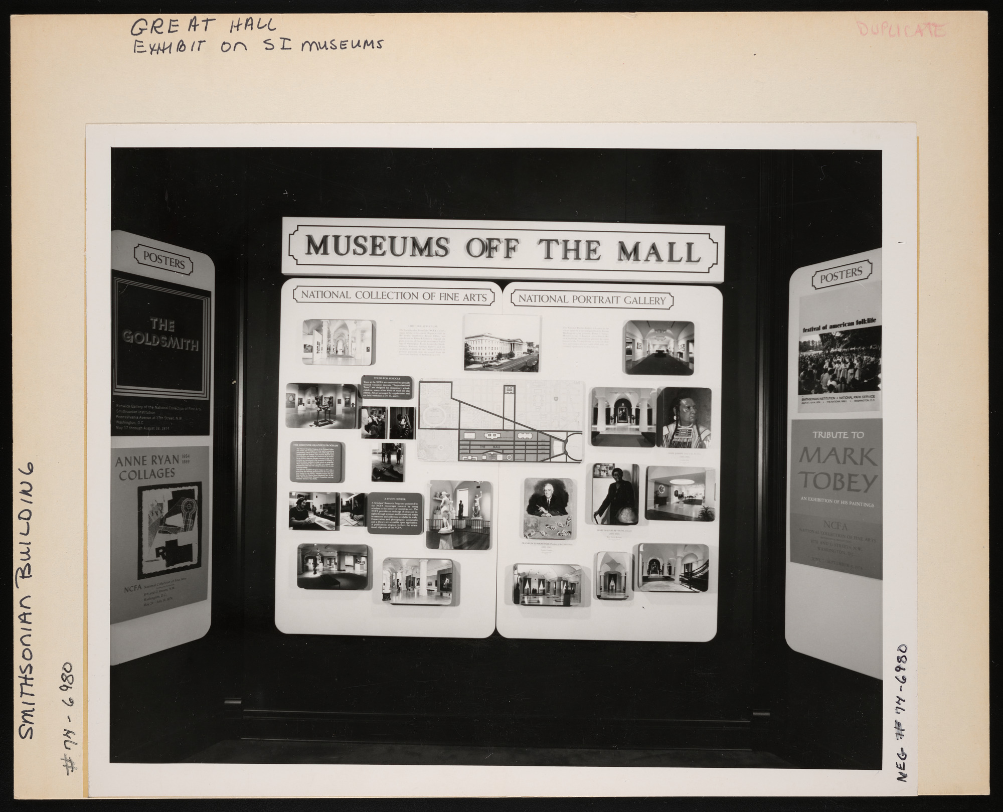 Smithsonian museums exhibit in the Great Hall of the Smithsonian Institution Building, or Castle, featuring "Museums off the Mall," including National Collection of Fine Arts and National Portrait Gallery.