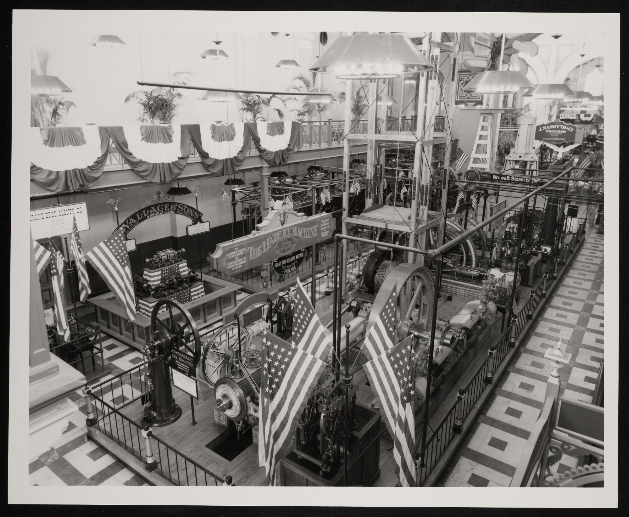 Interior view, machinery exhibits at "1876: A Centennial Exhibition" in the Arts and Industries Building.