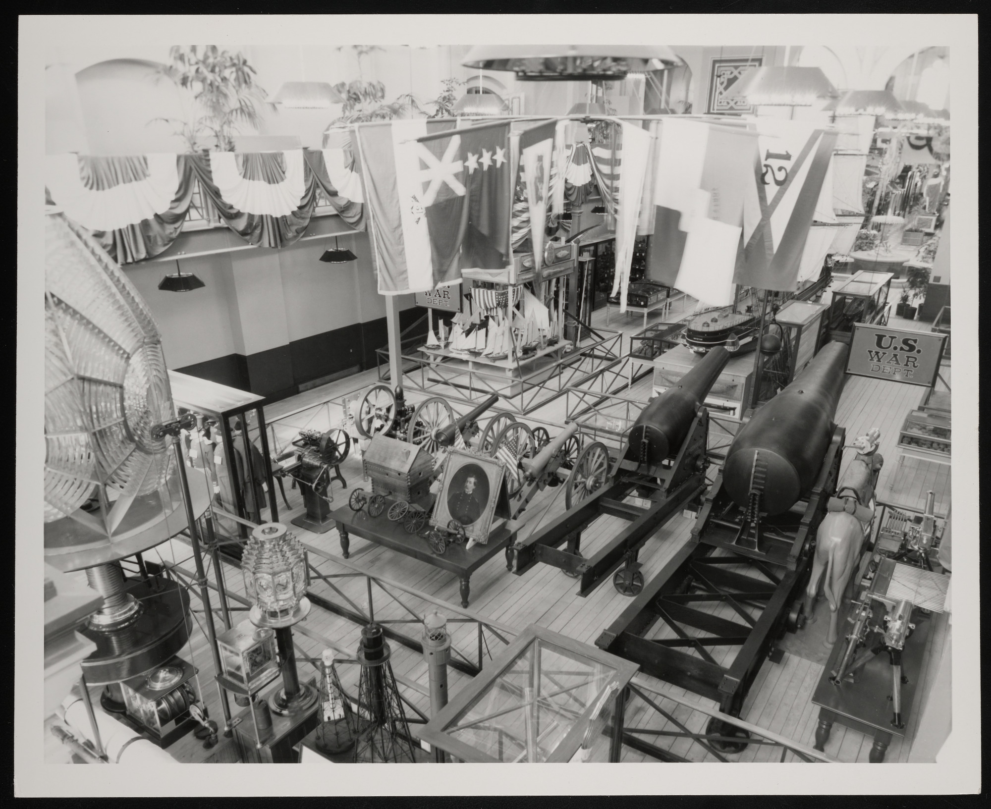 Interior view, U.S. War Department exhibit at "1876: A Centennial Exhibition" in the Arts and Industries Building.