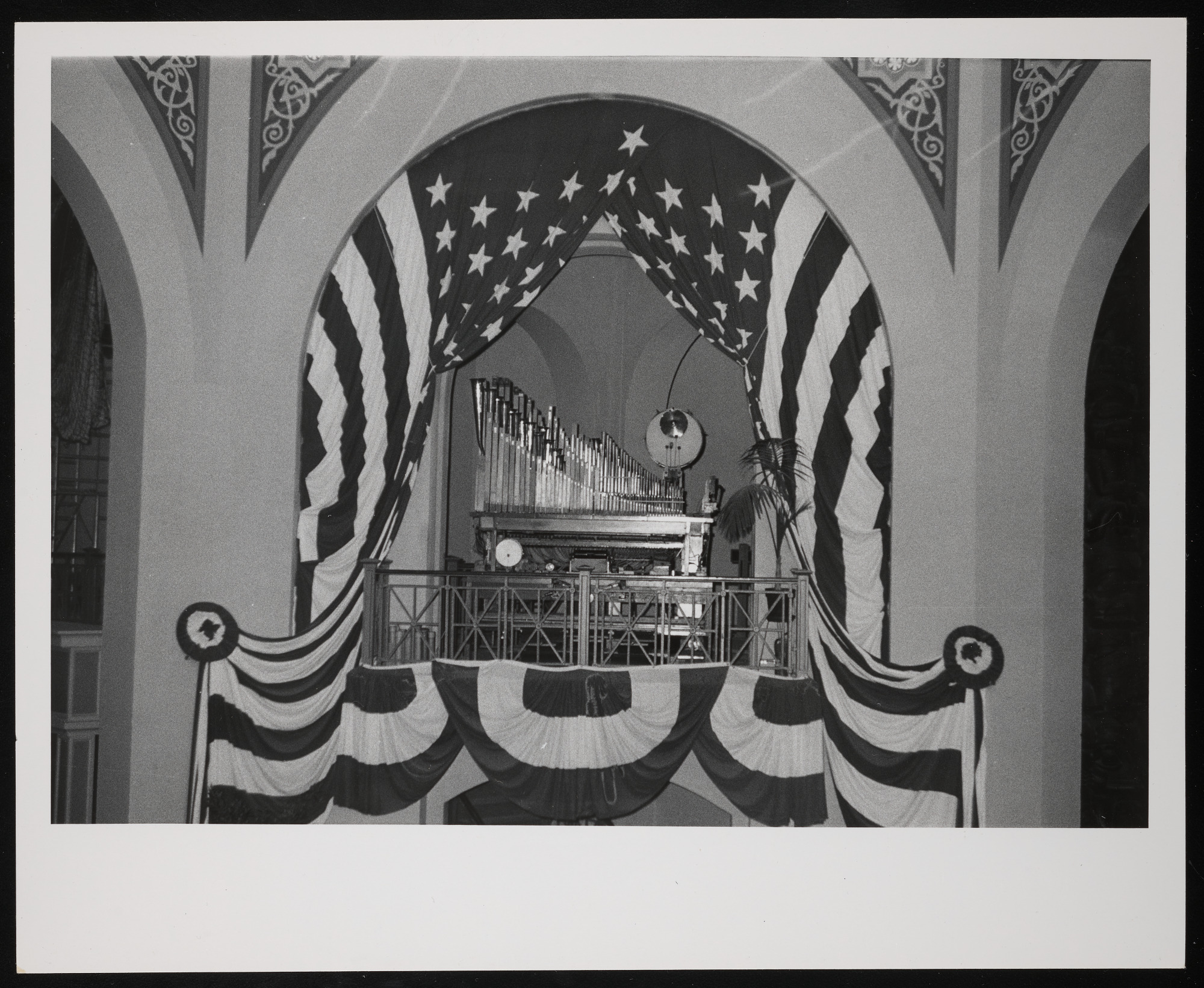 Interior view, calliope on display for the "1876: A Centennial Exhibition" in the Arts and Industries Building.
