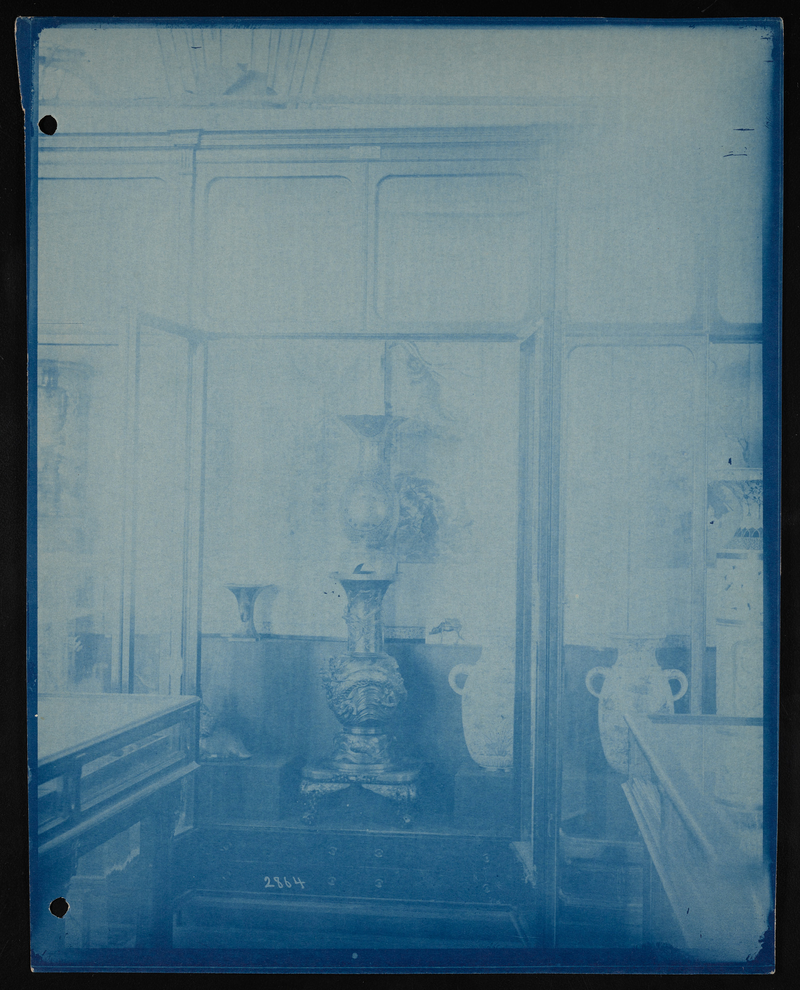 Interior view, ethnology exhibits in the Upper Main Hall of the Smithsonian Institution Building, or Castle, featuring Horace Capron Japanese Collection.