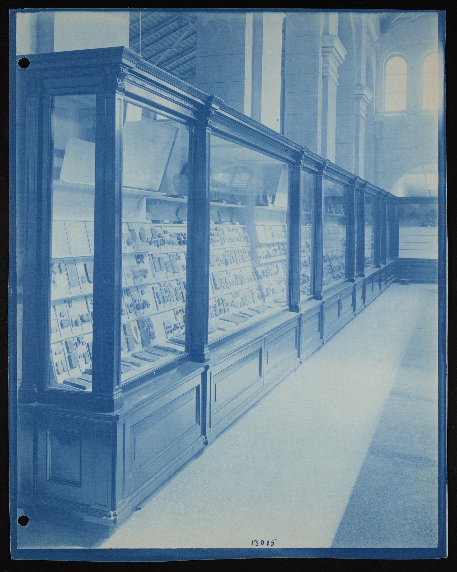 Interior view, geology exhibits in the United States National Museum, now known as the Arts and Industries Building.