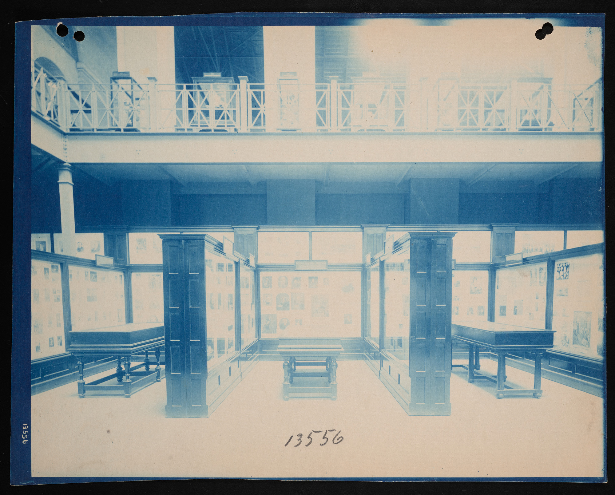 Interior view, graphic arts and ceramics exhibits in the Northeast Court of the United States National Museum, now known as the Arts and Industries Building.